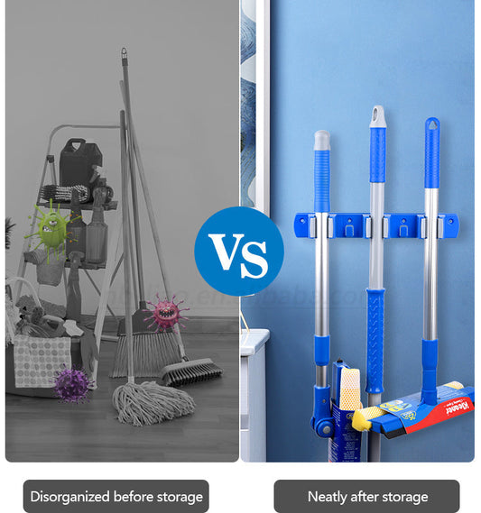 Kleaner Wall Mounted Mop Organizer And Broom Holder With Hook
