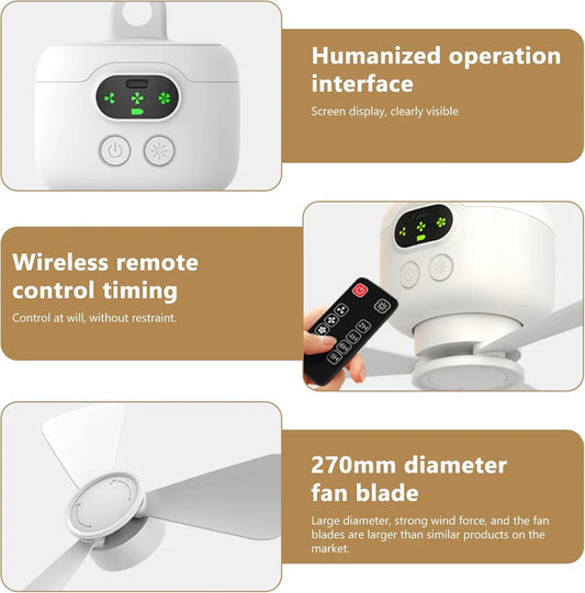 Portable Ceiling Camping Fan with Light – 8000mAh Battery, Remote Control Timer