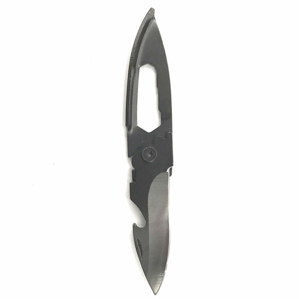 - Can Opener: Open tin cans with the hook mouth and the top edge of the tool.