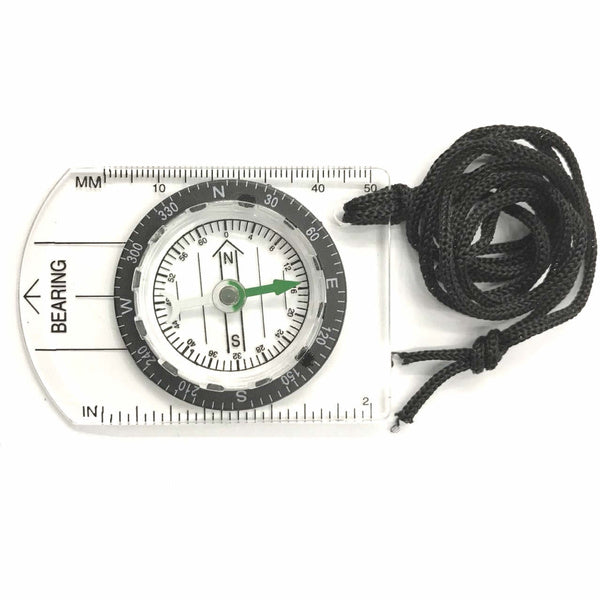 - Fixed declination correction scale, jewel bearing, and dual scales (cm or inches).