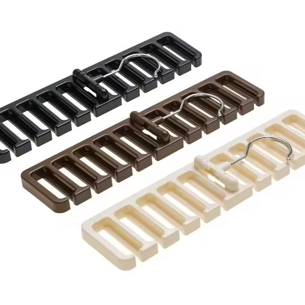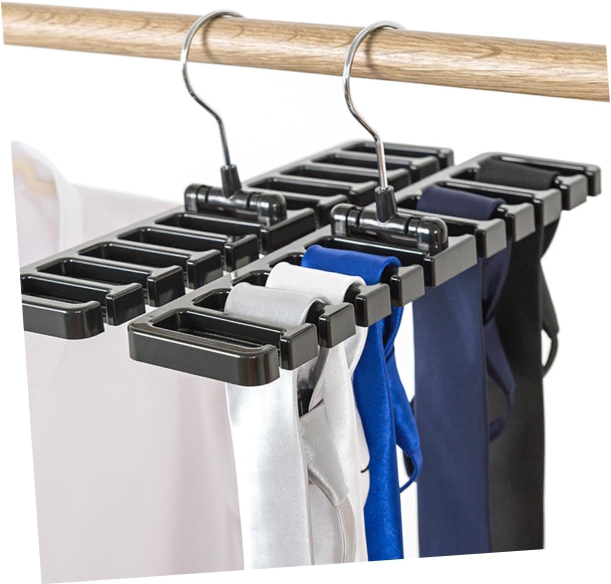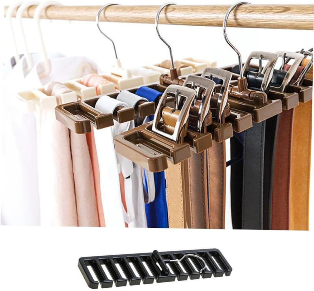 The Tie and Belt Closet Hanger is constructed with premium quality materials, ensuring sturdiness and durability for long-term use. This organizer is perfect for holding ties, belts, scarves, and other accessories. With 10 slots, this rack provides ample space for organizing and is convenient for use in closets or wardrobes.