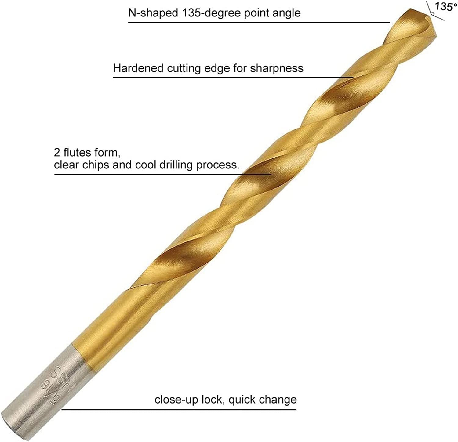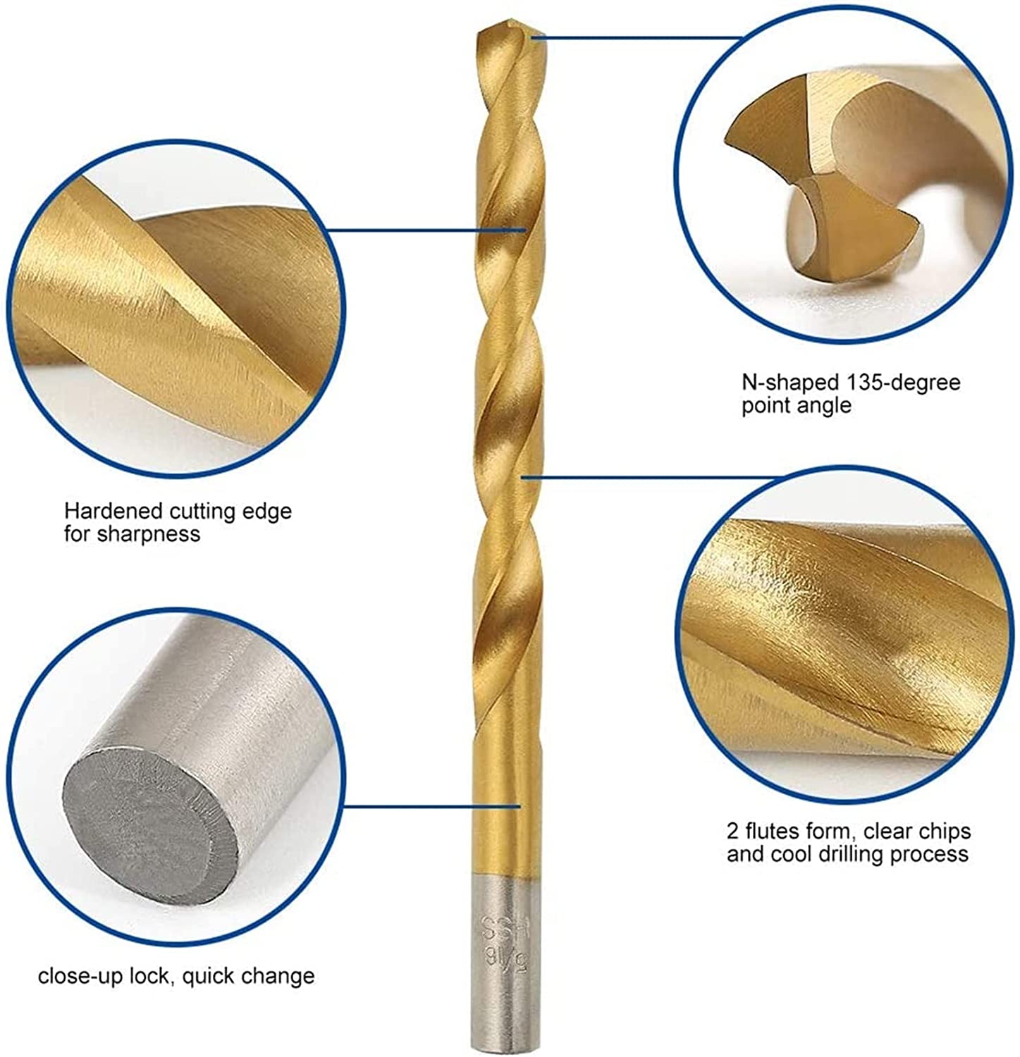 Torsion design and performance: 135° precise points, oxidized gold surface, and round straight shank. Prevent walking, and remove debris and particles faster. Precision and complete grinding production to ensure smooth chip movement. It is ideal for DIY projects and home maintenance and repairs.