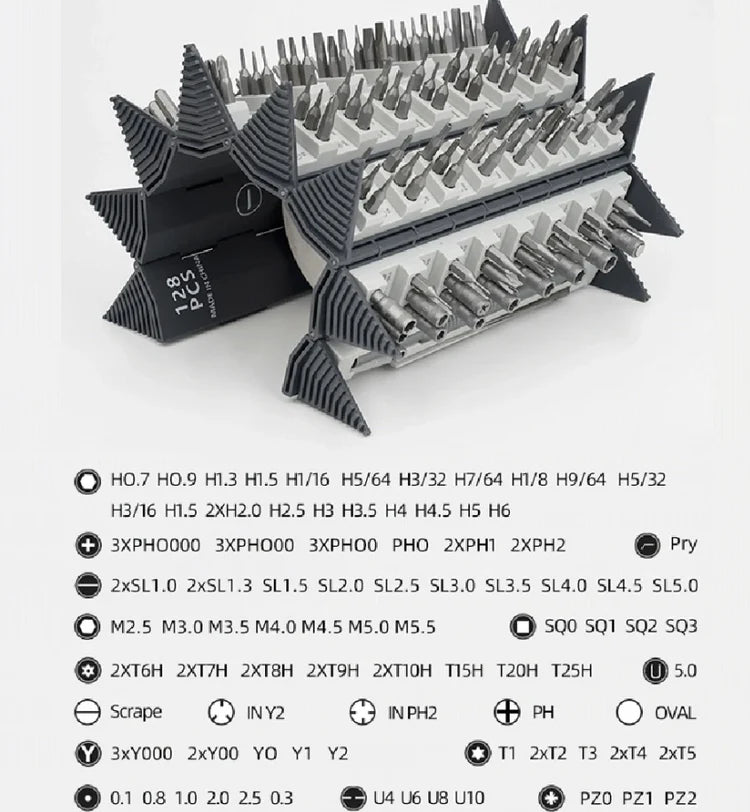 - All-in-One Convenience: With 128 pieces, this set covers all your screwing needs, from hex and Phillips to slotted, Torx, and more.