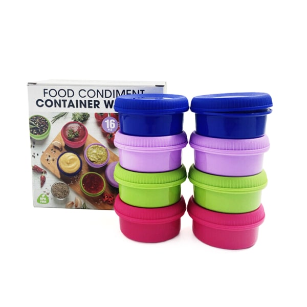 Perfect for on-the-go meals, these 16 pcs Plastic Takeaway Sauce Cups with Lids are a must-have for any food lover. The lids click firmly and are splash-proof, making them ideal for deli, salads, sauces, soups, and more. The transparent, stackable design saves space and allows for easy identification, while also serving as a great storage option for small items like gems or medicine. Get yours today to elevate your dining experience!