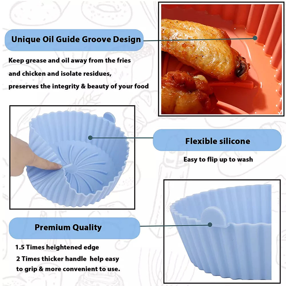 The silicone inside of our air fryer is thick enough to withstand the baking time! EASY TO CLEAN These round silicone air fryer liners effectively keep food scraps away from the air fryer, leaving it as clean as unused, saving time and energy. These paper liners are a must if you hate cleaning after baking It's oil and water , non-stick, and , making it perfect for all your baking needs.