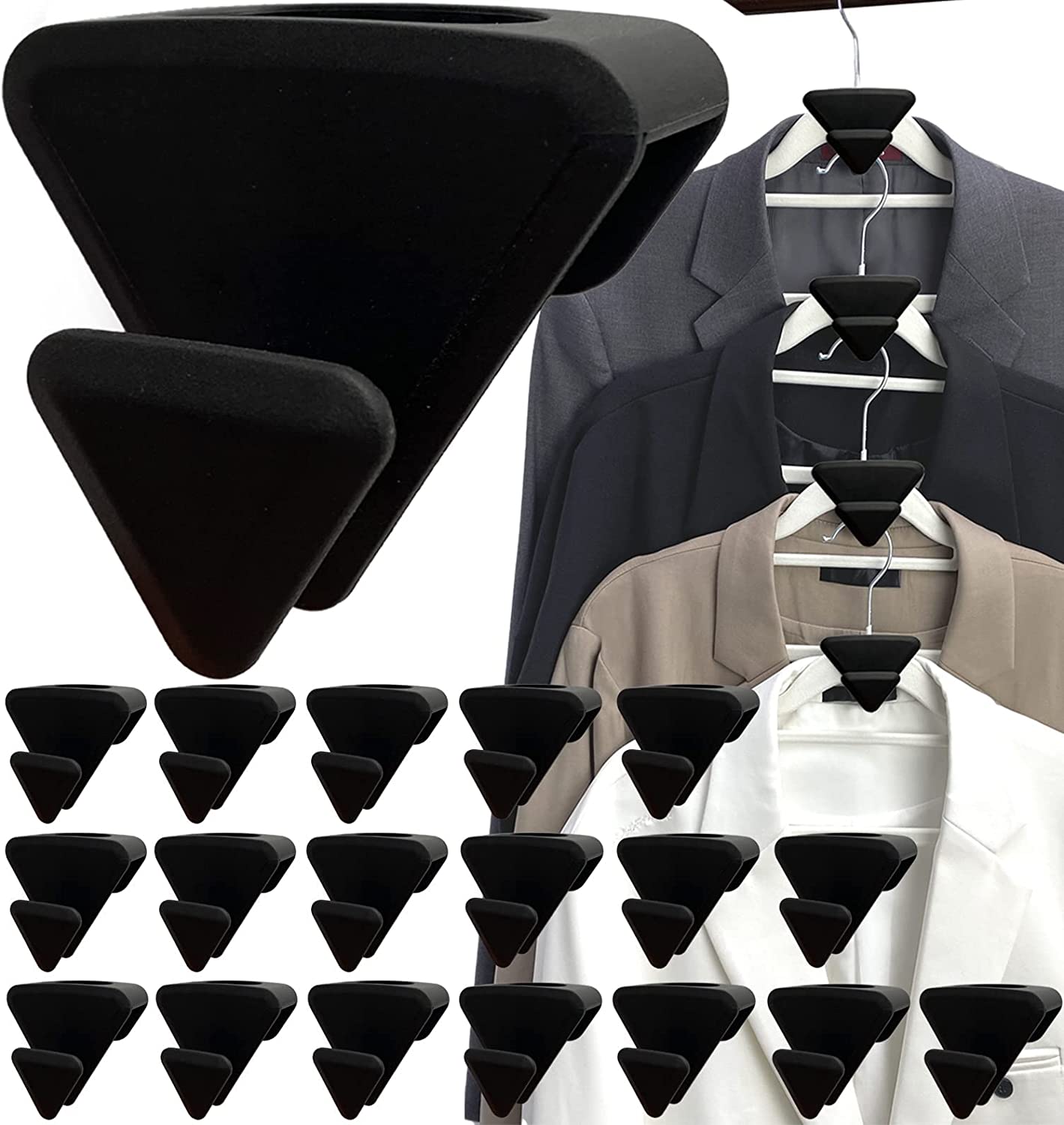 Space Triangles vertically hang items, creating up to 3X more closet space Plus, a cramped closet means wrinkled clothes not anymore
