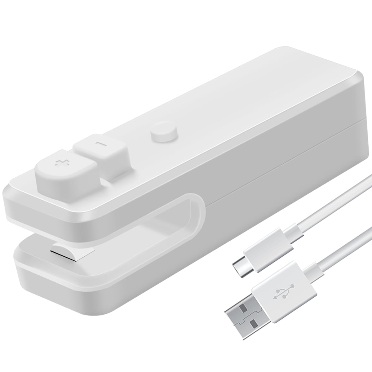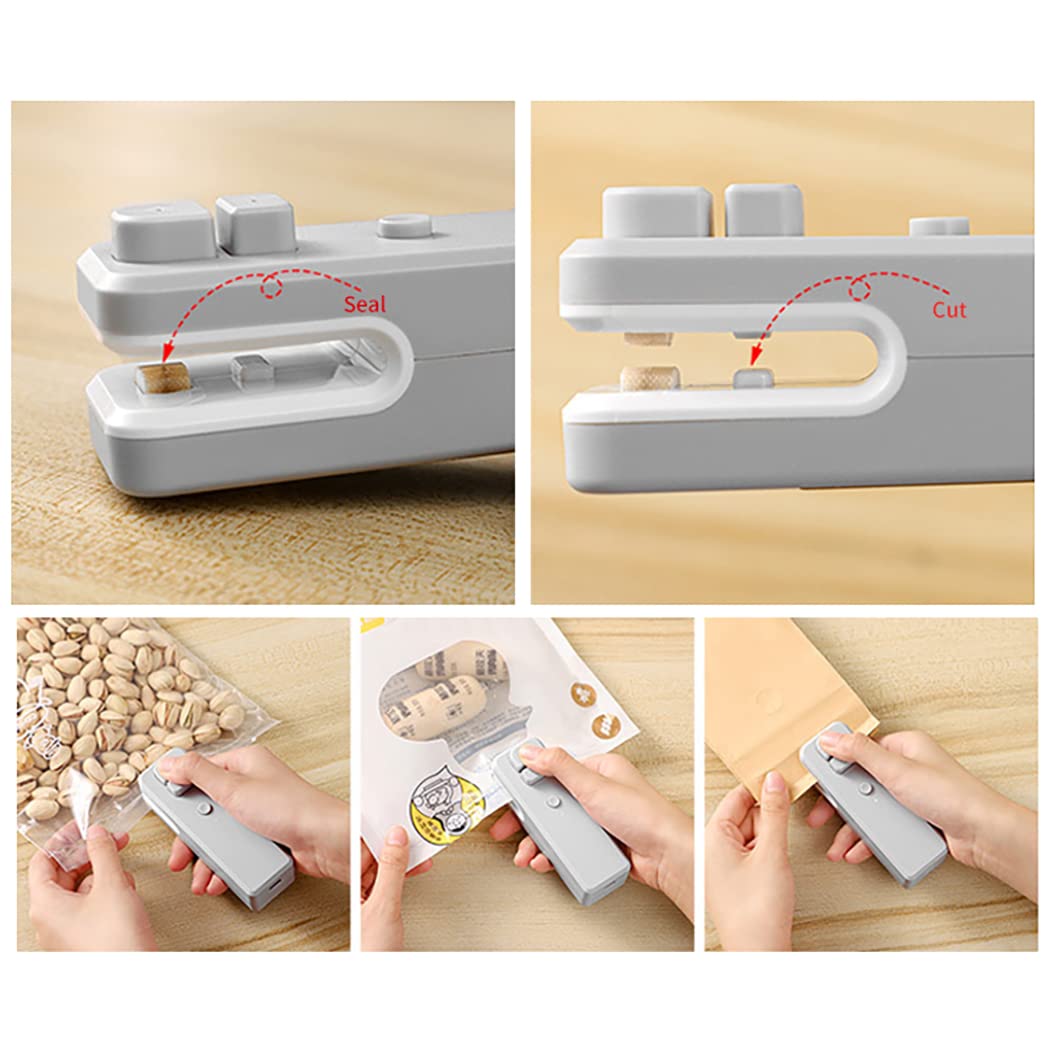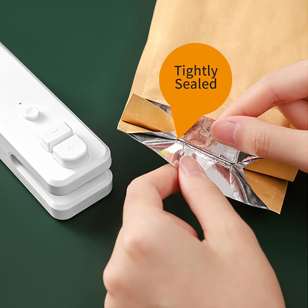 The 2 In Bag Sealer and Cutter is a versatile device that can seal and cut bags with ease. It comes equipped with a hidden cutter on the side, making it convenient for quick sealing and cutting at any time. This mini bag sealer is perfect for PP/PE/PVC plastic bags, snack bags, pet food bags, and more, providing a longer freshness for your food and snacks. With a simple 3-5 second press to preheat, sliding the sealer along the edge of any bag will create a tight seal. Plus, you can easily open bags by pressing the mini food cutter through the bag, eliminating the need for scissors. Worried about food waste and dust? This heat sealer effectively blocks both and keeps your family healthy. Best of all, it's USB rechargeable with a USB cable included, so you can charge it anytime and anywhere. Keep your 2 In Bag Sealer and Cutter easily accessible by storing it on your fridge or any metal surface with the added convenience of a magnetic strip!