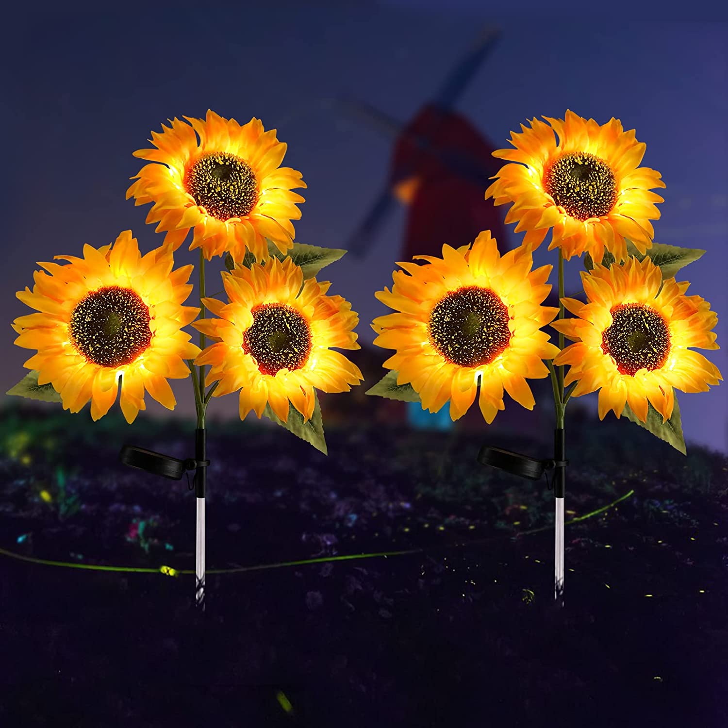 2 Pack Solar Garden Light With 3 Sunflowers