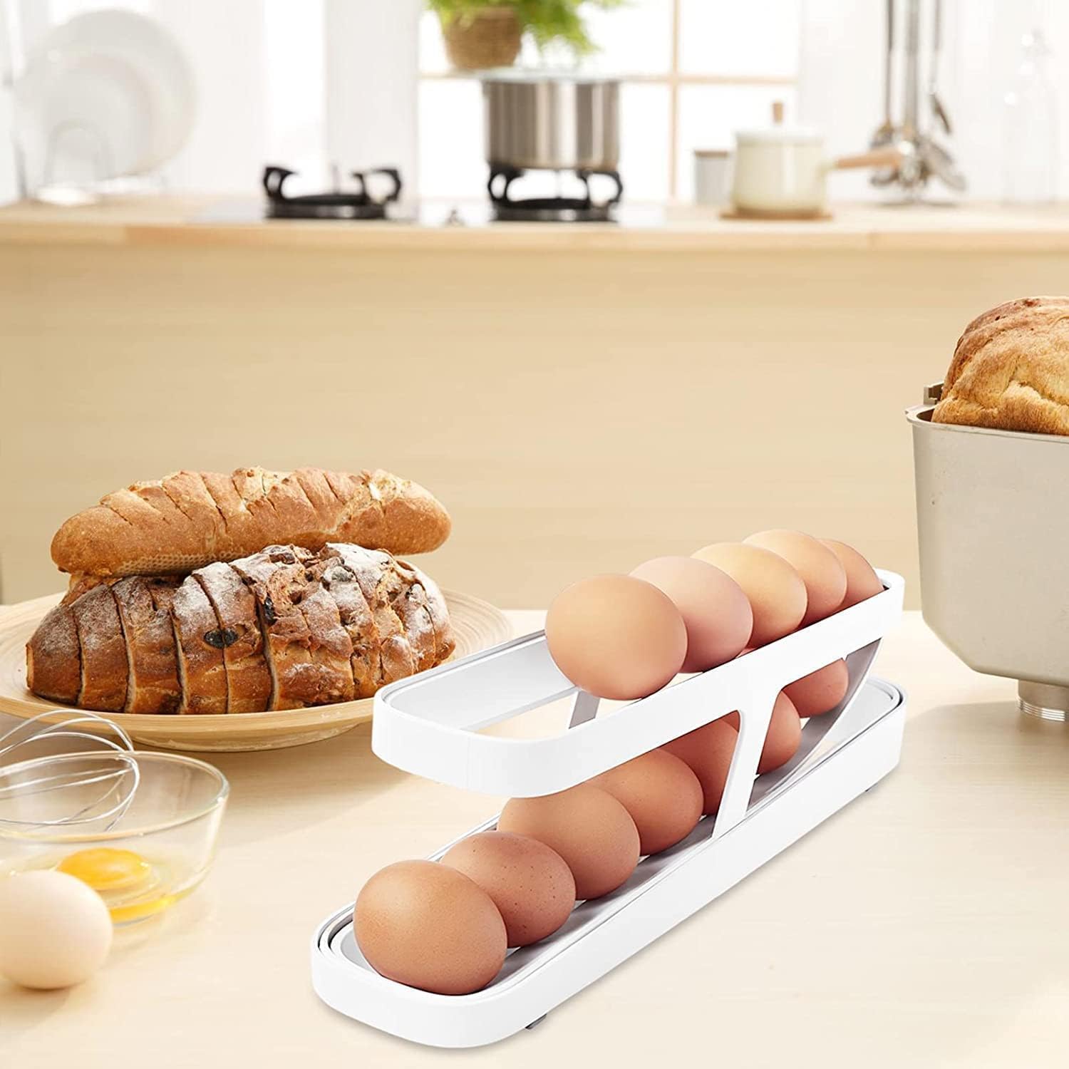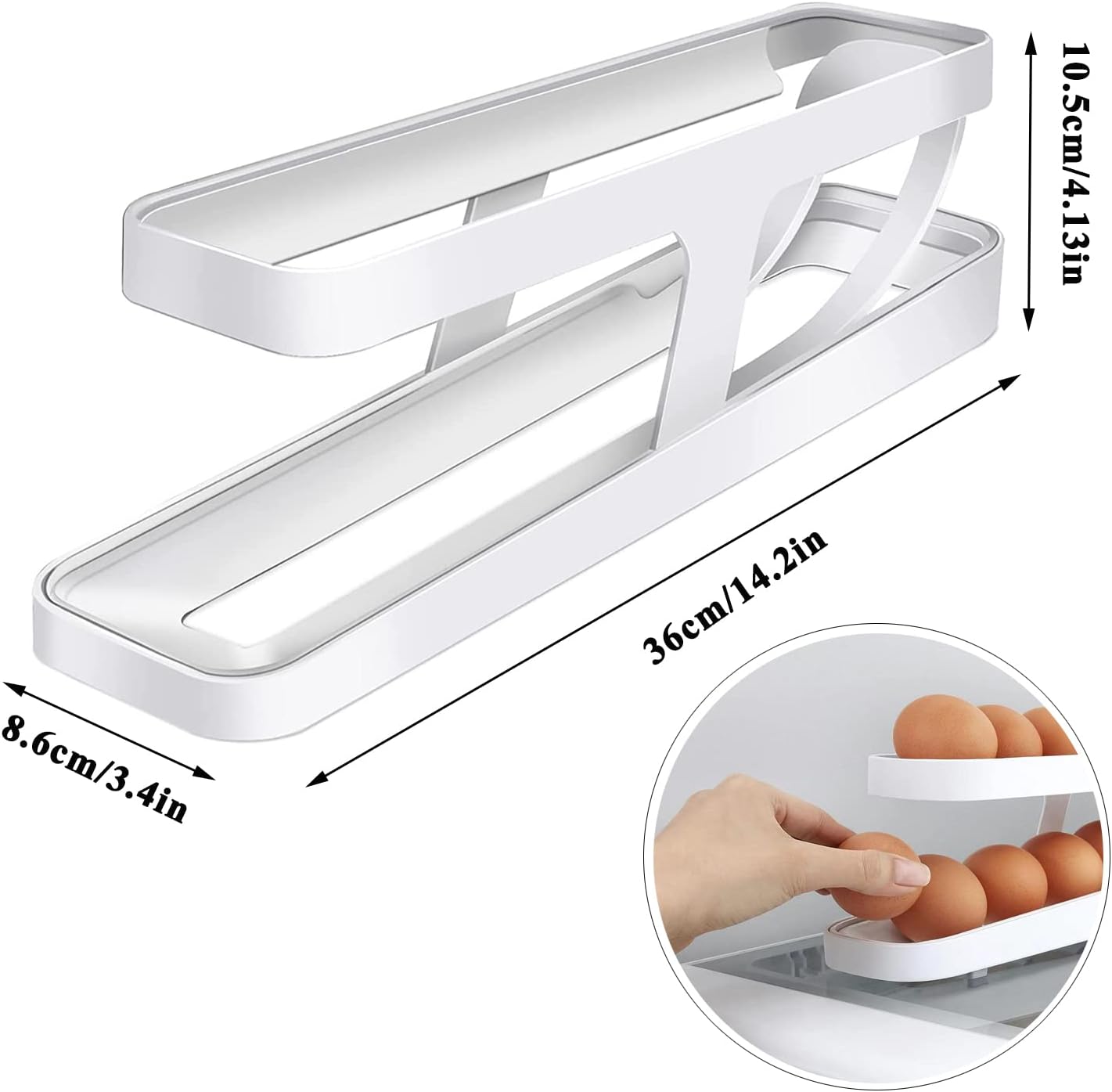 Our 2 Tier Automatic Egg Rolling Stand, made of high-quality ABS plastic, is the perfect storage container for eggs. With automatic roll design, the required eggs can be easily removed with just one hand, as the remaining eggs automatically roll forward to fill the space. No assembly is required for the egg dispenser, and it is easy to clean and maintain. With a non-slip base, it is also safe to use and can be placed in the refrigerator, counter, or dining room.