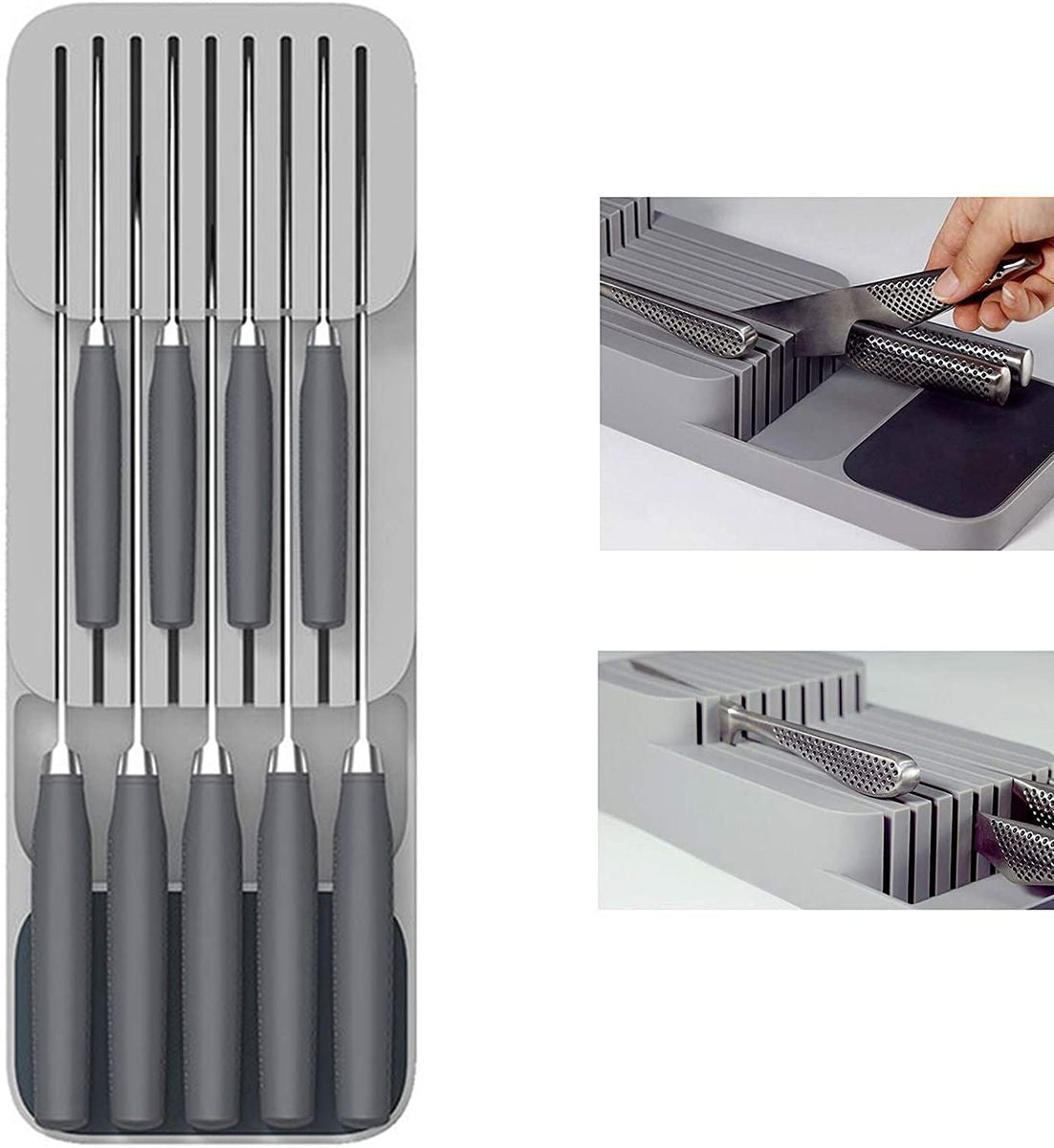 Store your sharp knives safely in your cutlery drawer with this compact knife organiser, it has 2-tiers for easy access and can hold up to nine knives of different blade lengths. Non-slip feet