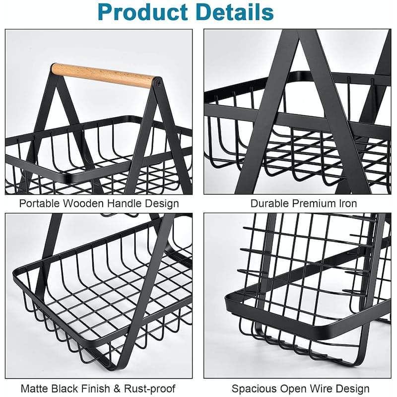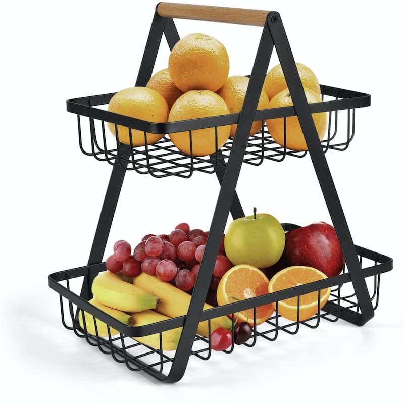 - This fruit and vegetable stand featured with easy-to-carry integrated handle that is built to make it simple to transport goods from pantry to basket to table.