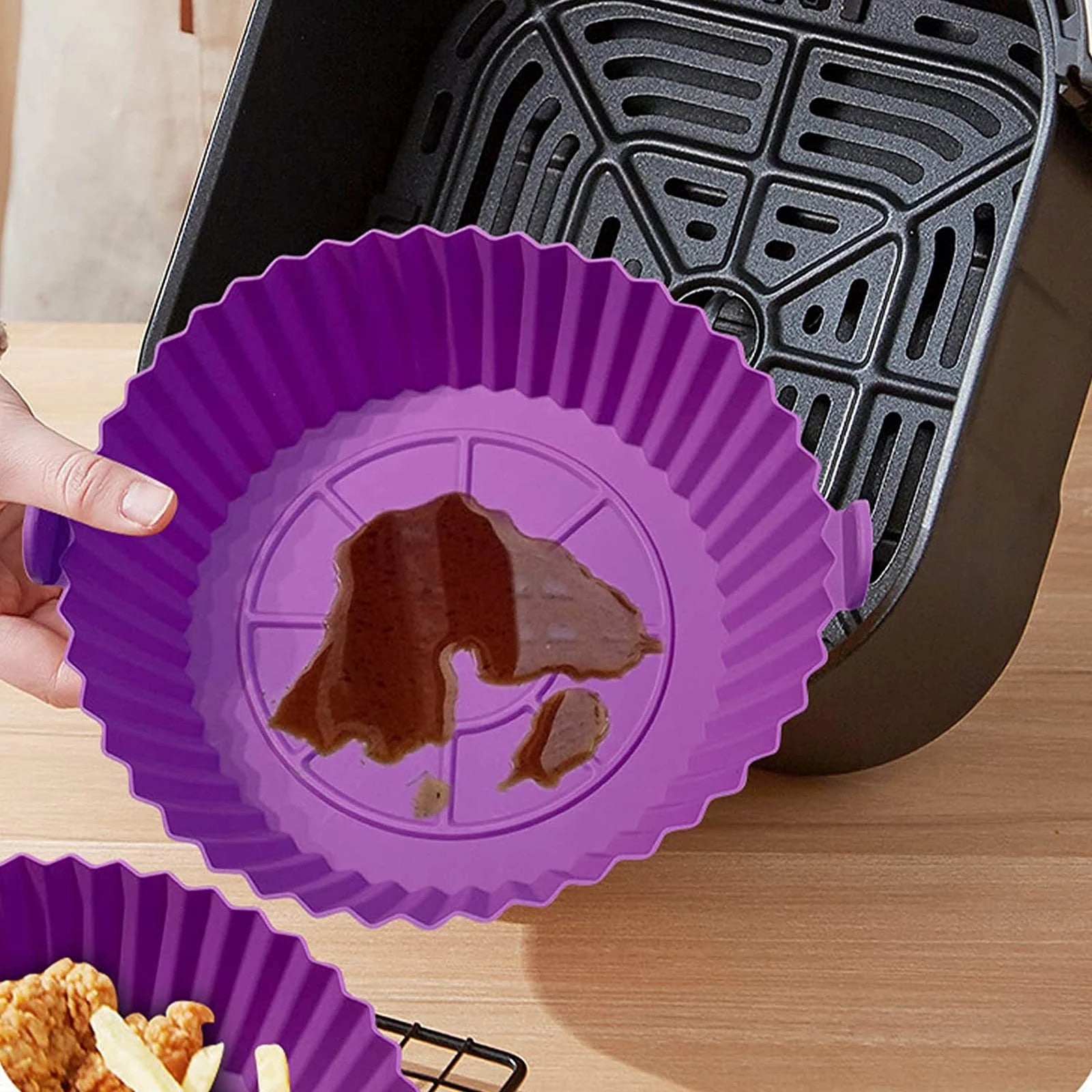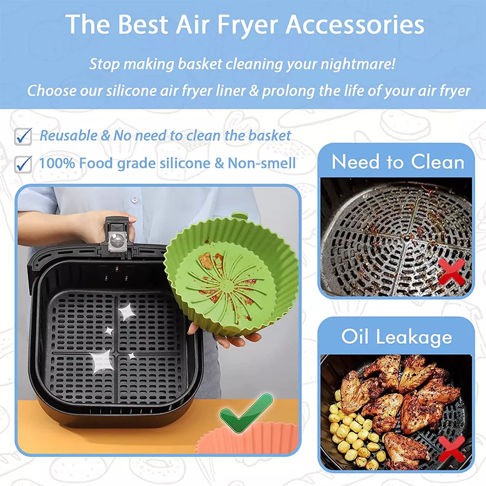 The silicone inside of our air fryer is thick enough to withstand the baking time! EASY TO CLEAN These round silicone air fryer liners effectively keep food scraps away from the air fryer, leaving it as clean as unused, saving time and energy. These paper liners are a must if you hate cleaning after baking It's oil and water , non-stick, and , making it perfect for all your baking needs.