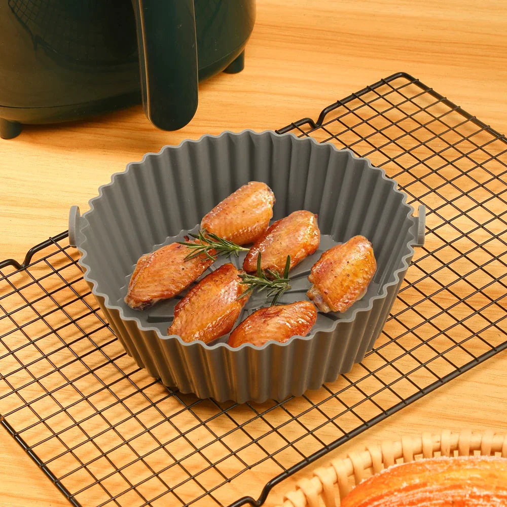 Air Fryer Silicone Plate Multi Function With Handle Oil Proof Pad High Temperature Resistance Air Fryer Silicone Plate High Temperature Resistance Non Stick Pan Reusable