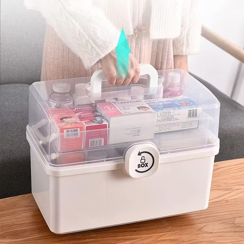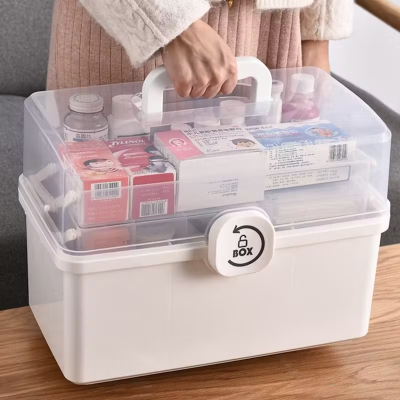 This medical storage box is what you need to keep your first aid kit and all your medicine in one place. For the safety of you and your family and children, a first aid kit is an essential item in the family.