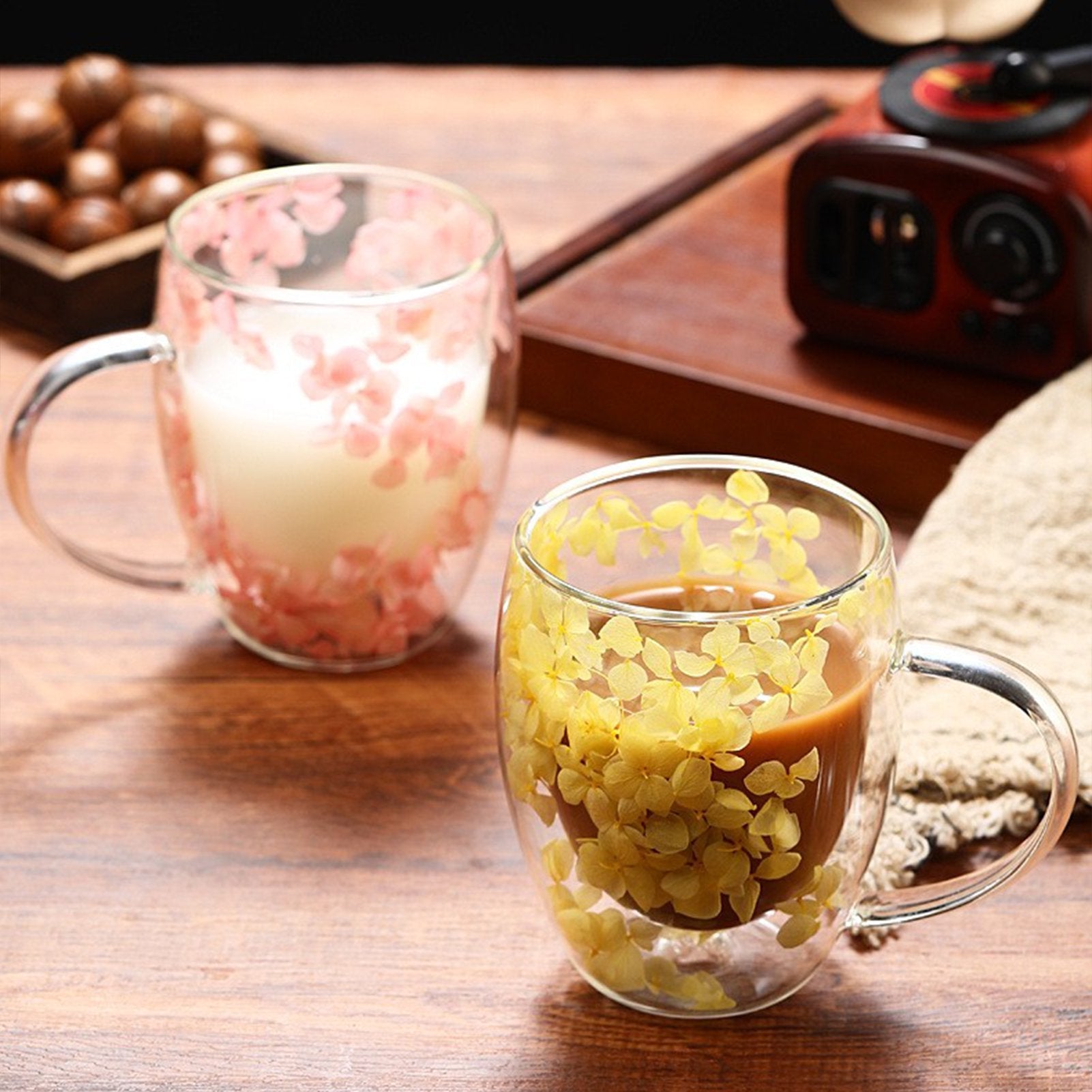 Double Layered Design: The unique double-wall design keeps your drink warm while ensuring the cup remains cool to the touch. With a convenient handle, this floral glass coffee cup is both beautiful and practical, making every sip a delight.