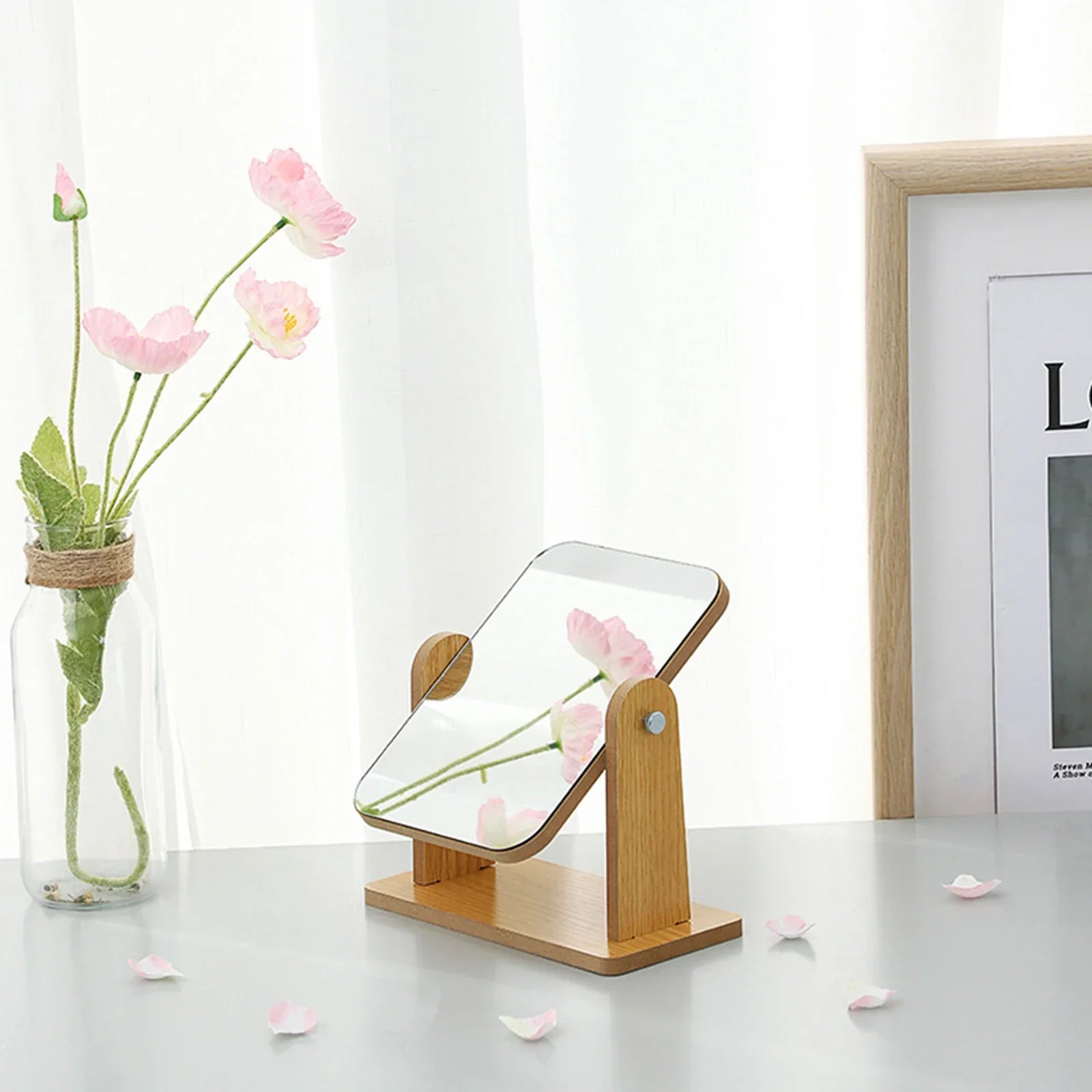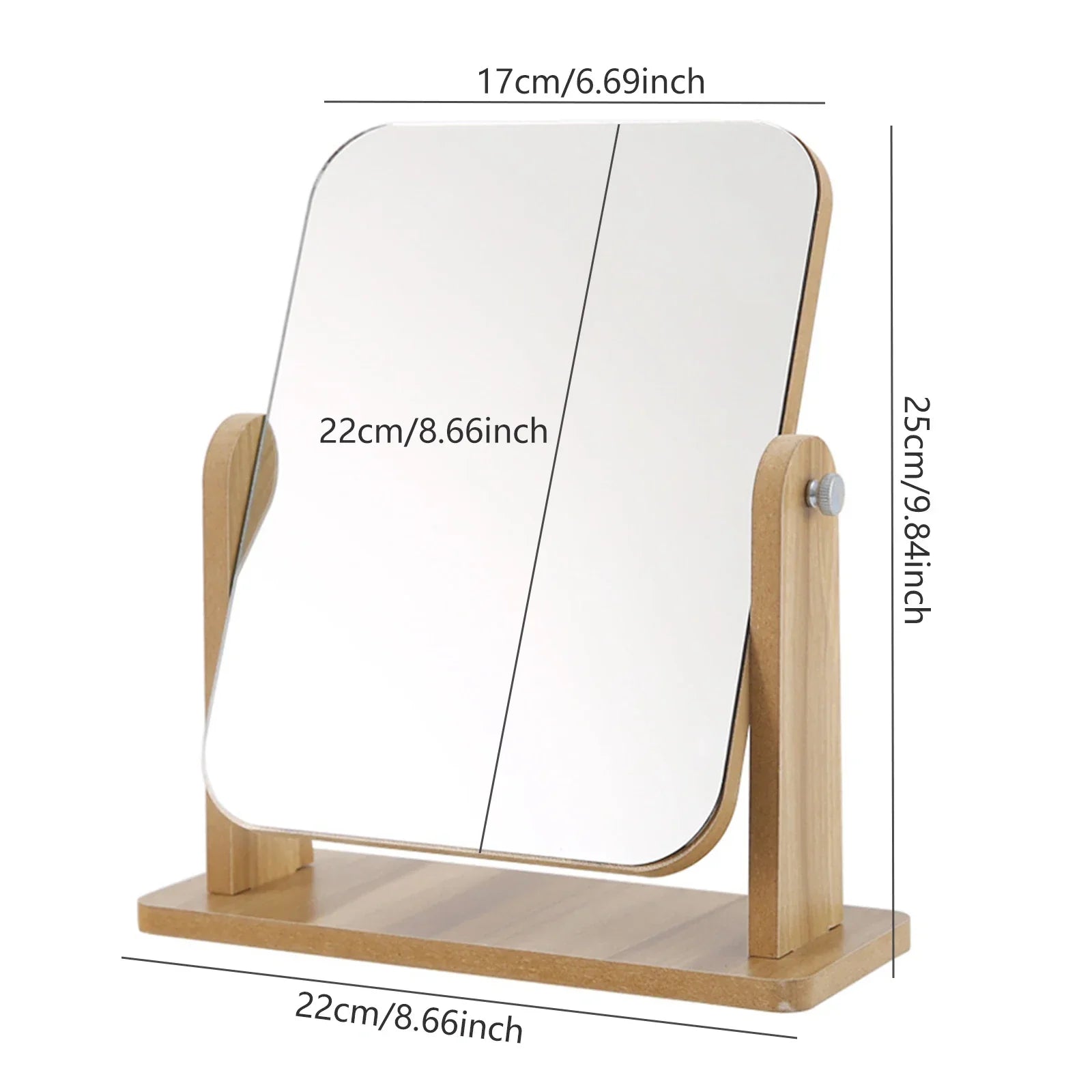 360 Degree Wooden Base Desktop Vanity Mirror