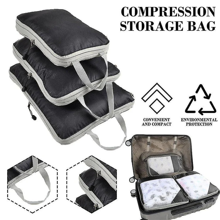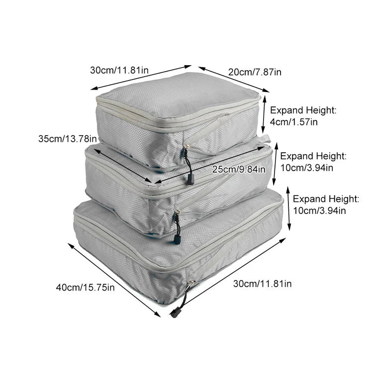 3Pcs Travel Storage Bag Compressible Packing Cubes