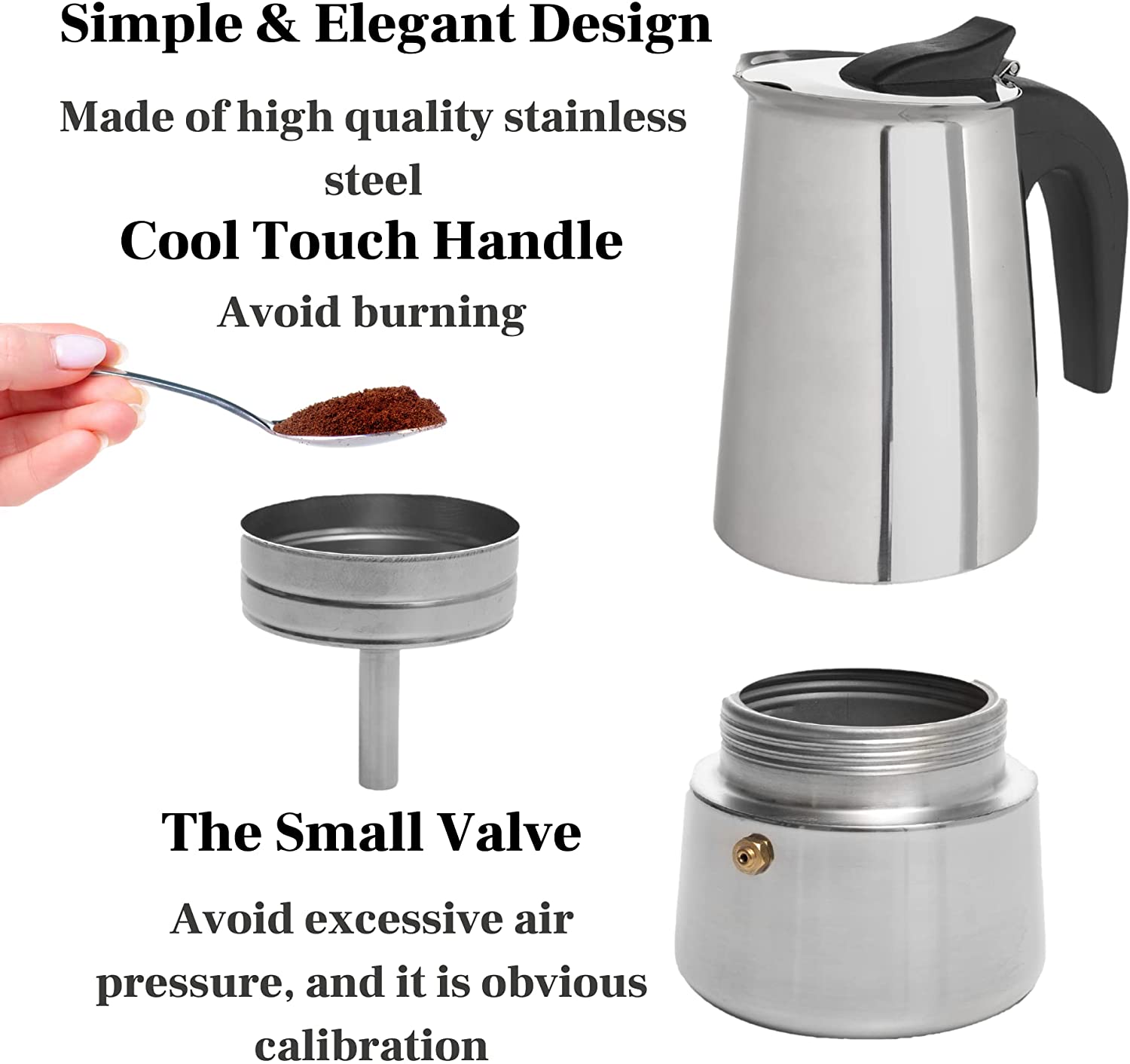 Stainless Steel Stove Top Espresso Coffee Maker - 4 Cups