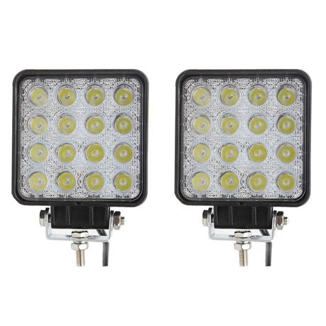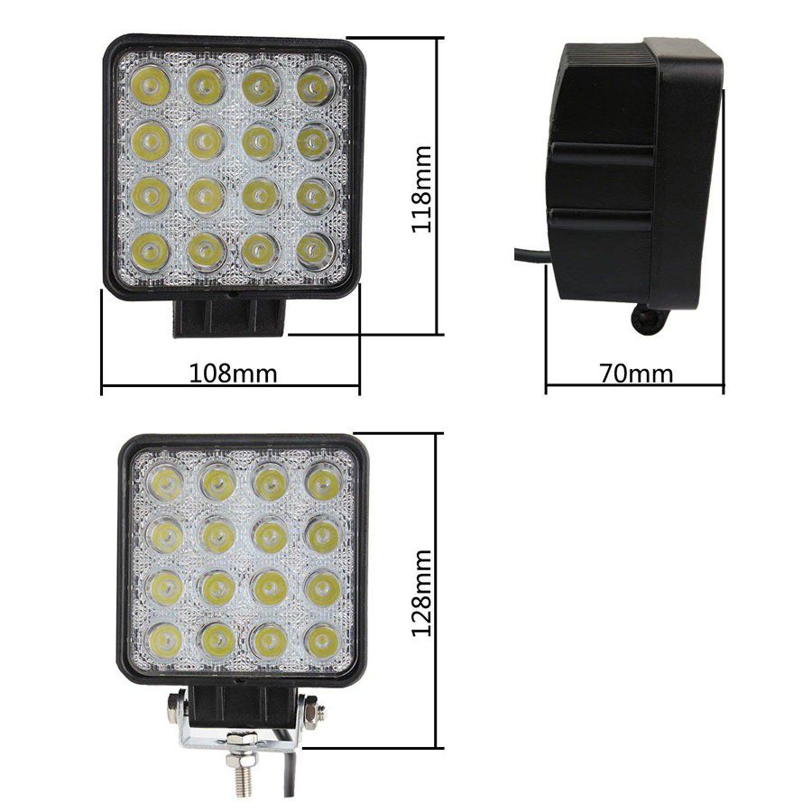 Square High Powered Spot LED Work Light Bar, 16 x 3 Watt high power & high intensity White LEDs at 6,000K color temperature with 2700 Lumens.