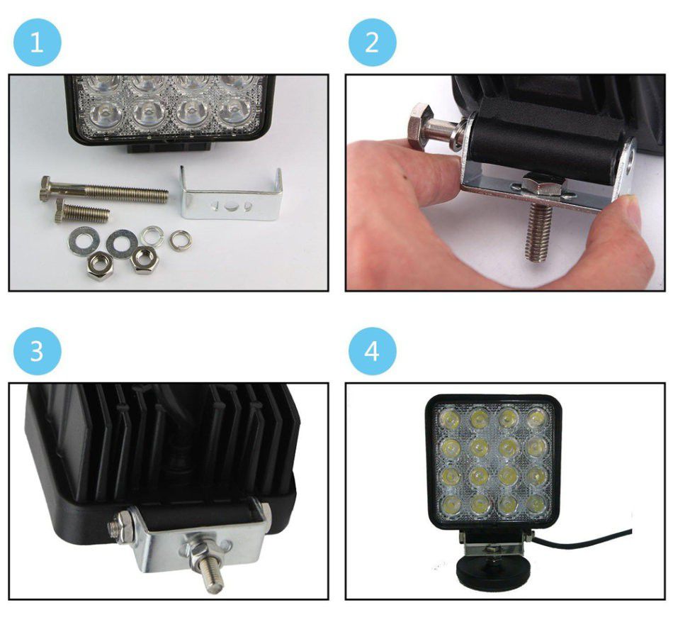Light 48W Waterproof Spot LED Work Light, Adjustable Mounting Brackets, Screws Set