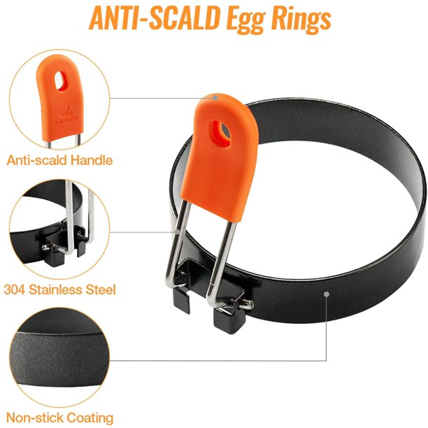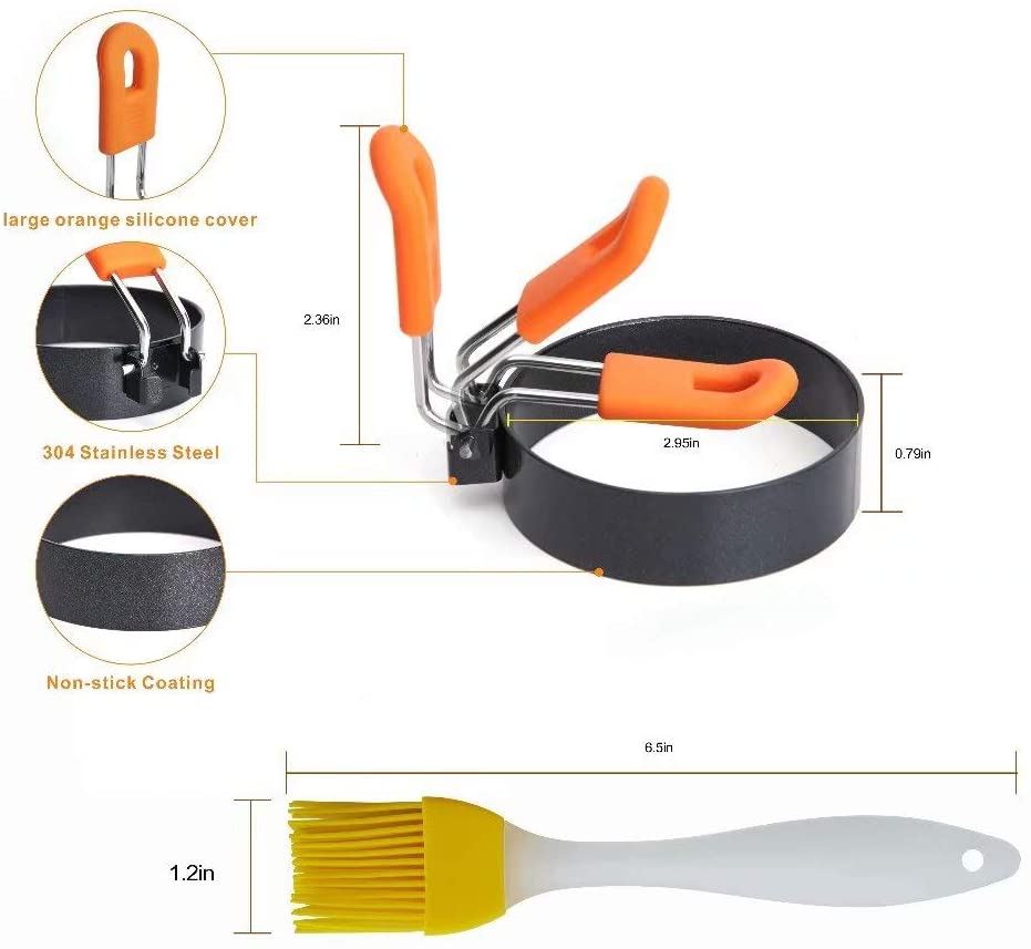 - Egg Rings: Great value egg rings with silicone oil brush, BPA free, refined non-stick coating and fold-up stainless steel handle.