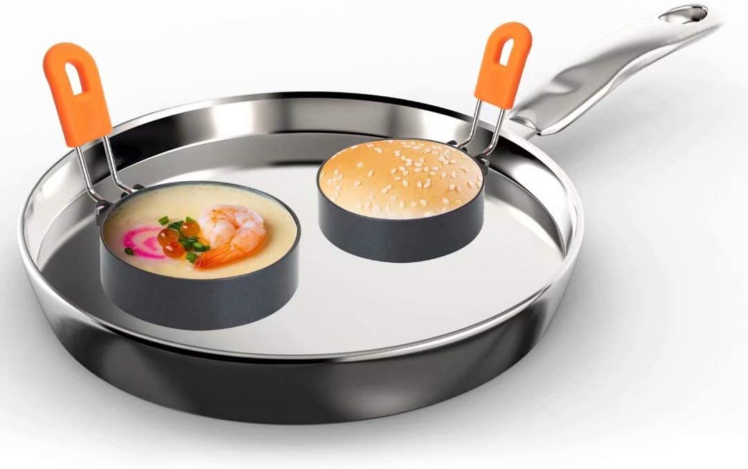 - Non-stick Stainless Steel: Refined high-quality coating and stainless steel for non-stick purpose. Unique anti-scalding silicone handle prevents scald. Weighty egg ring prevents egg white leaking.