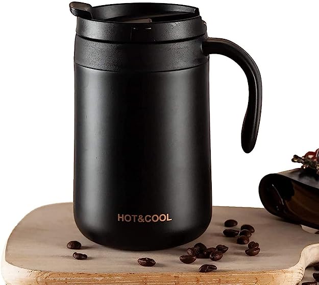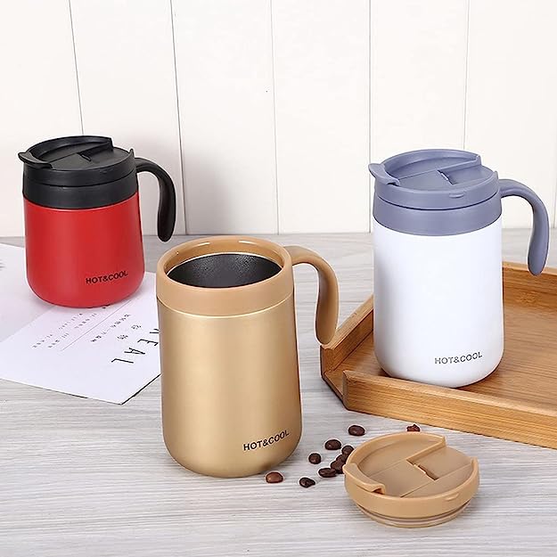 This 500ml Coffee Mug Vacuum Insulated is the perfect choice for coffee, tea, and water lovers. Its 550ml capacity makes it ideal for multiple uses. Its splash-proof lid is sealed with a rubber gasket to provide excellent heat insulation. The insulated cork bottom prevents scalding and scratching, and the large handle ensures an easy, comfortable grip.