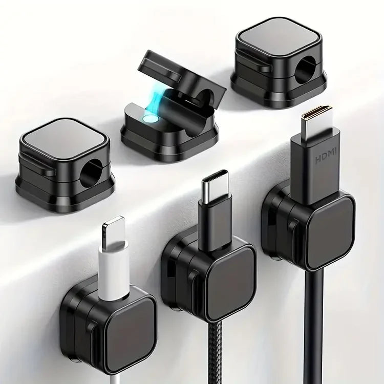 6 Pack Magnetic Cable Clips - Smooth Adjustable Desk Cable Management, Self-Adhesive Wire Holder for Home Office, Wall, Desktop, Bedside Table.