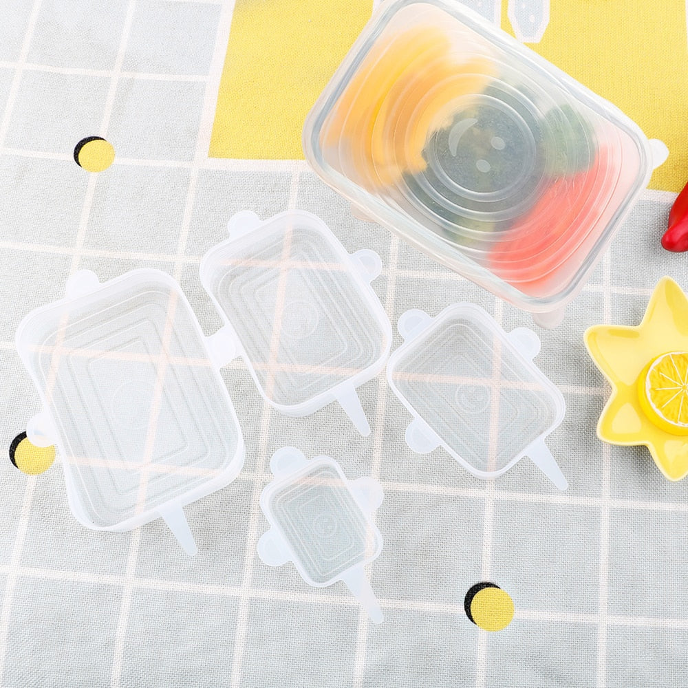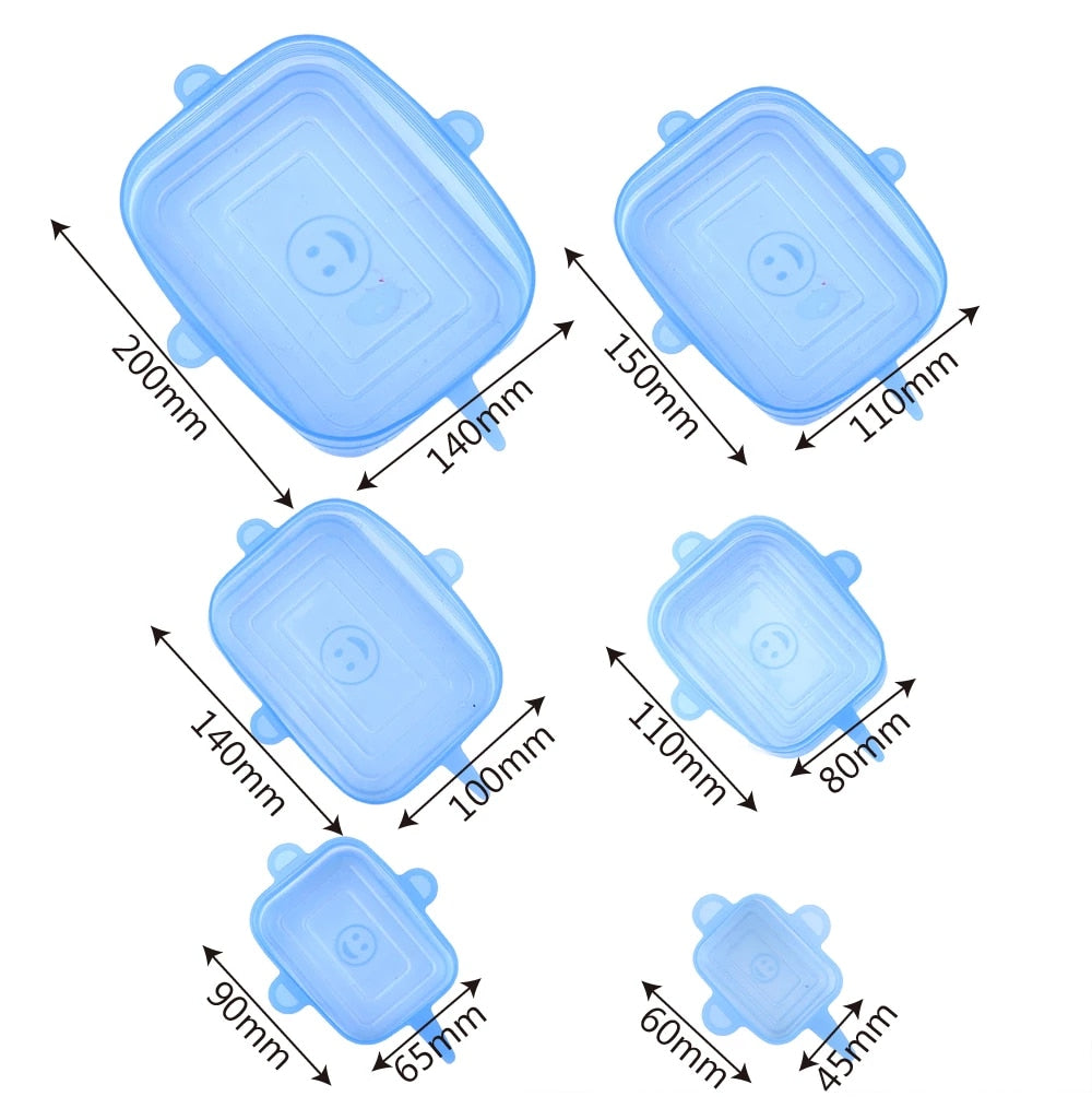 - Wide application - Silicone lids food covers consisting of rectangular 6-piece set.can be applied to different sizes of containers, including: jars, cups, juice lids, pots and pans, direct contact with food, microwave dishwasher fridge safe.