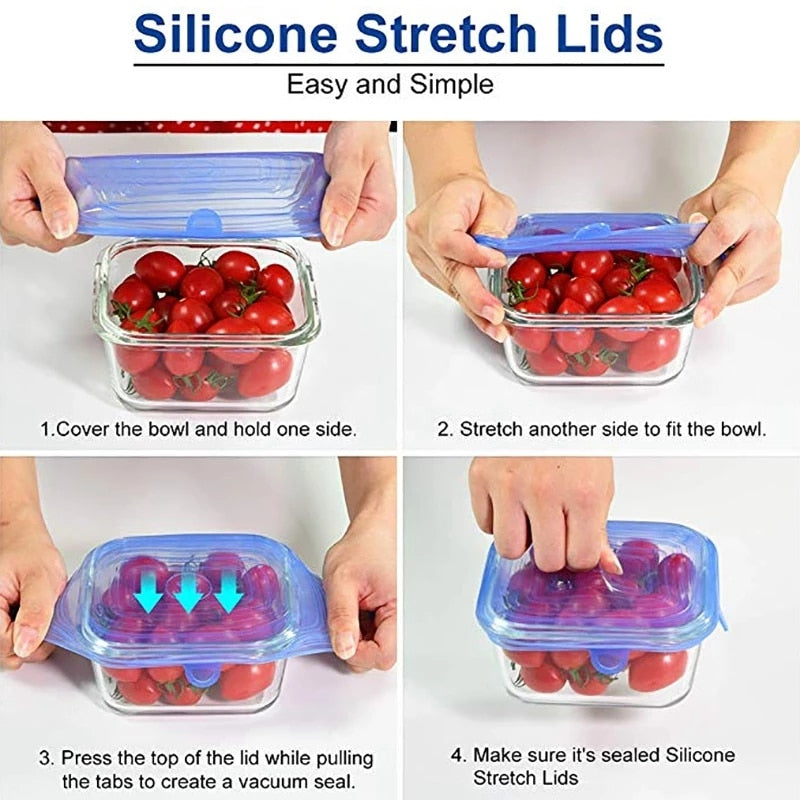 - Sealed and Leak-Proof - The stretch lids are highly absorbent and soft to prevent leakage. Clean and dry the container and the edges of the silicone lid (free from oil and water) before use. Otherwise, the silicone lids will slip off.