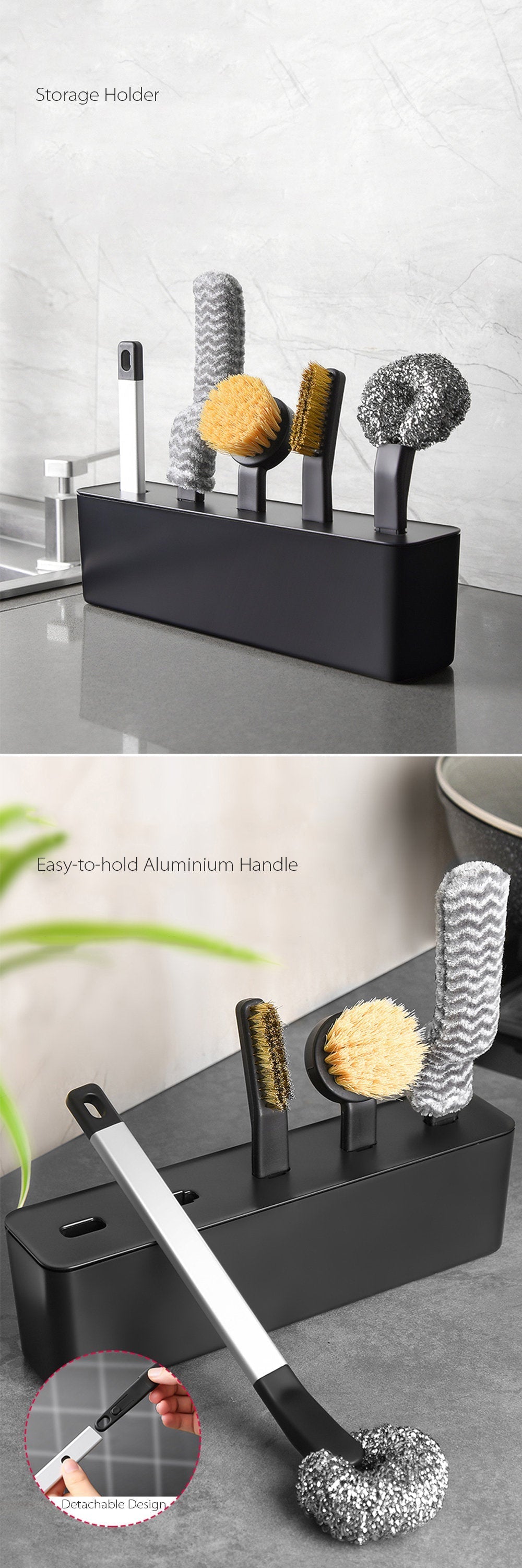 Keep your dishes sparkling clean, with this kitchen brush set offering four brush heads that can be used with the sturdy handle. Clean your non-stick pans and scrub those hard to reach places inside of glasses or jars. You’ll love the cleaning power at your fingertips each time you use this kit. This is a great choice in housewarming gift.