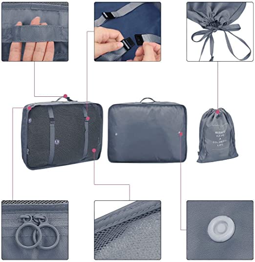 - SAVE SPACE - 7 different size bag that can hold clothing, footwear, toothbrushes and more ,it has a lot of compartments,can keep clean