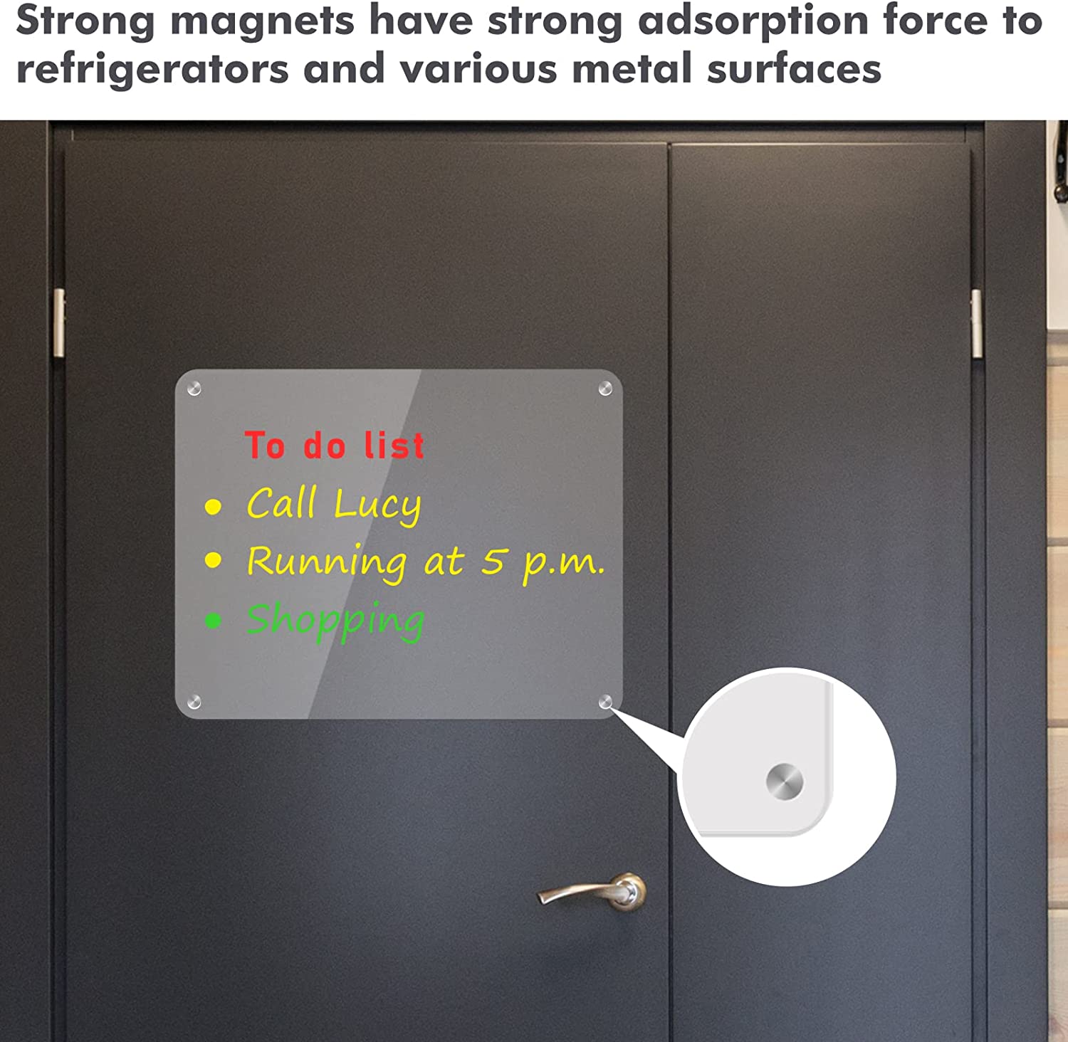 - Perfectly arrange your wonderful life: the magnetic refrigerator notepad is a simple and creative clear acrylic dry erase board. The stylish transparent board combined with colorful handwriting makes your content clear and easy to read. Organize your daily life and that of your family with the chic planning board.