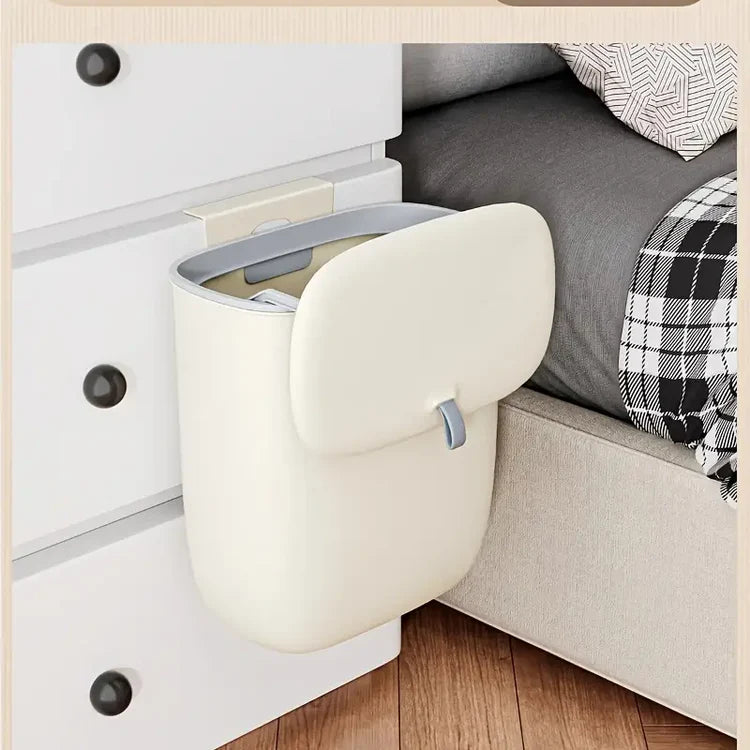 Changing the trash bag is quick and mess-free. Just slide the lid down, remove the ring and full bag together, then insert a new one. Ideal for kitchens, bathrooms, or any space where compact waste storage is needed.