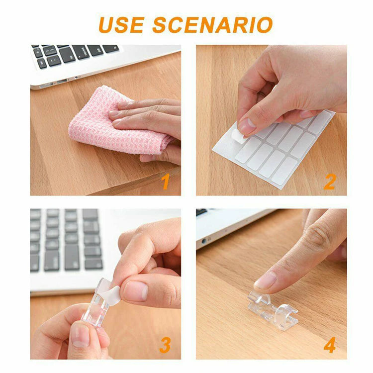 Keep your cables neat and tangle-free with these adhesive cable organizer clips. Designed for convenience, they securely hold various types of cords, including power cables, charging cables, USB cords, cell phone chargers, audio cables, and wired headphones. Say goodbye to cluttered desks—it's time to keep your workspace clean and organized.