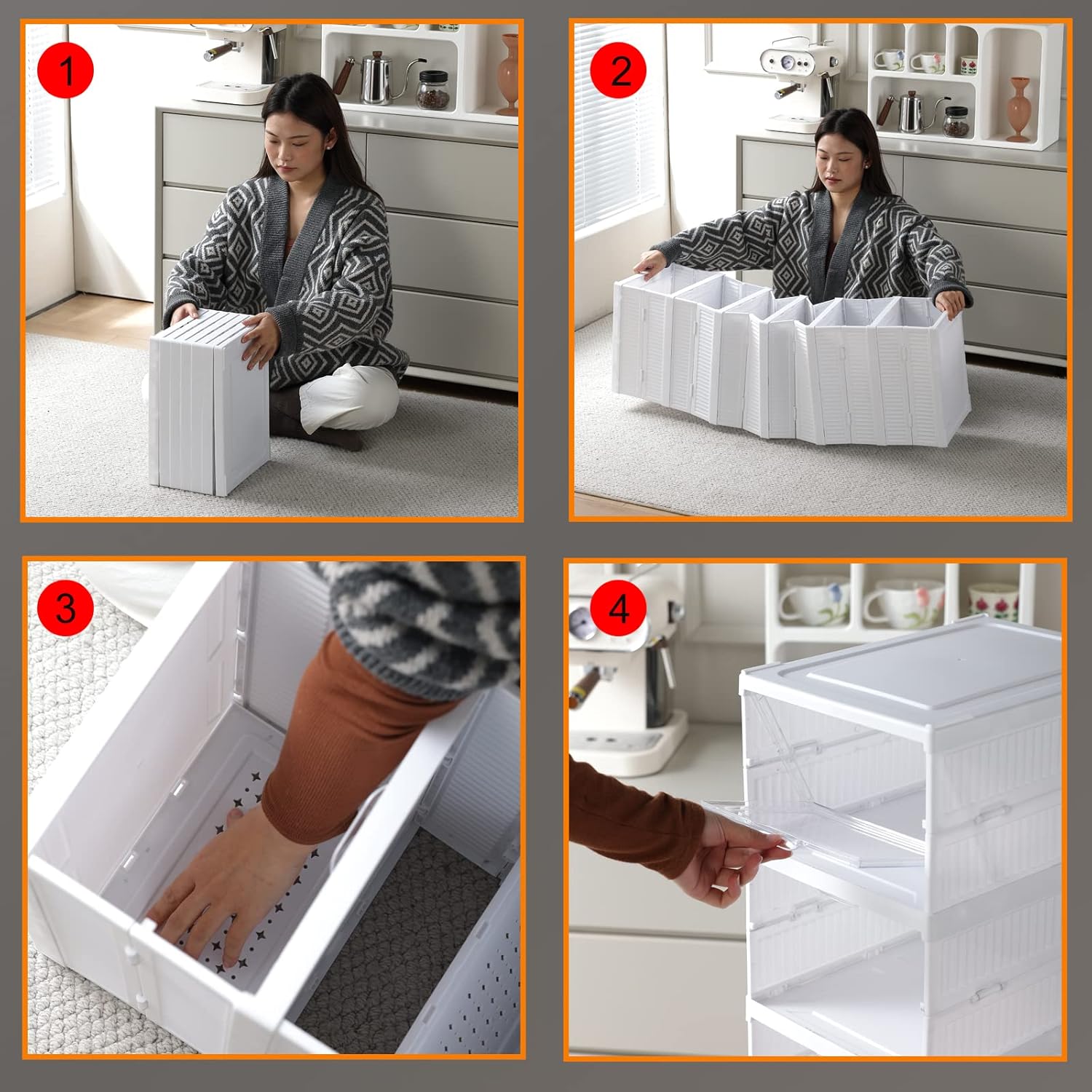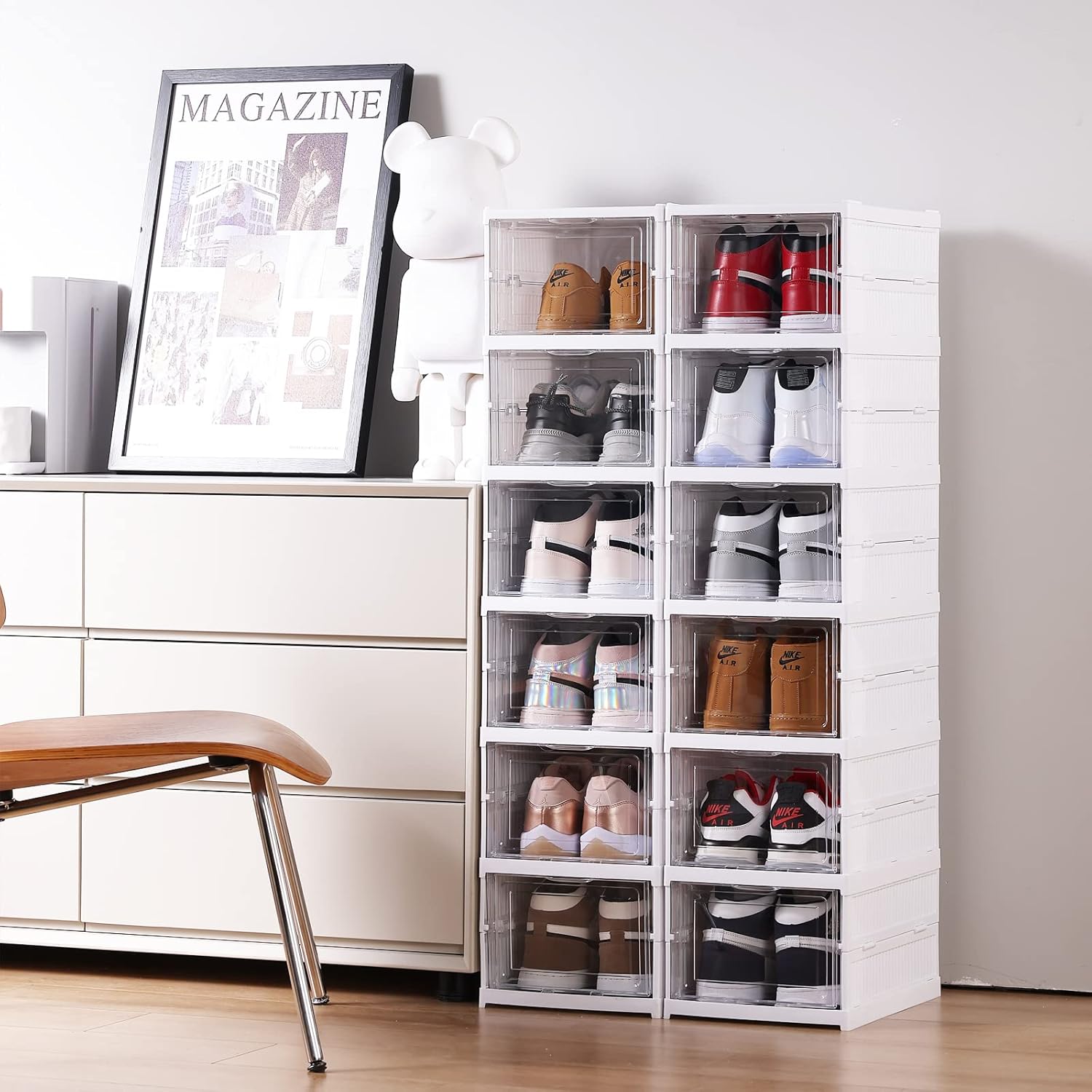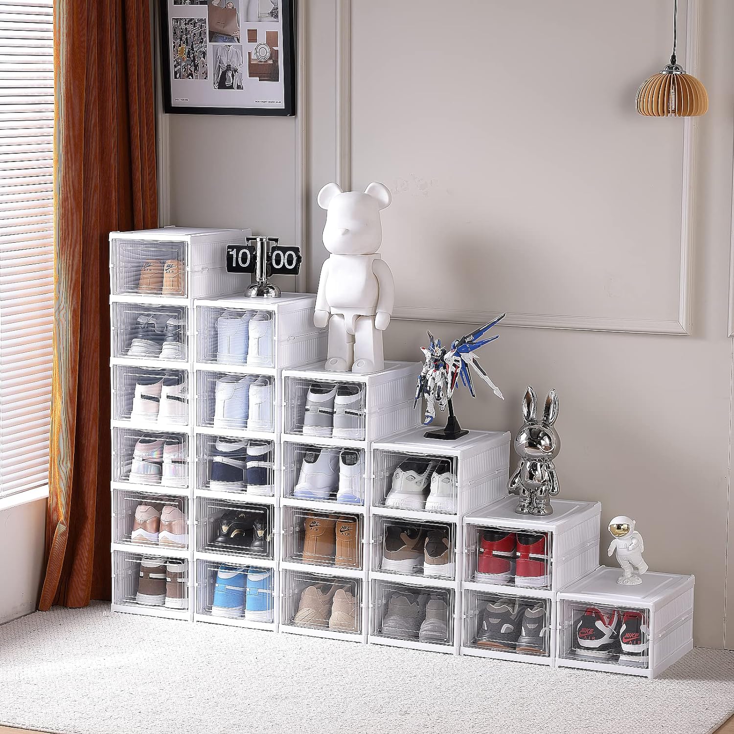 - Plastic Shoe Boxes with Lids: Made from clear and sturdy ABS and PP plastic, protecting shoes from dust and dirt. Assembly-free design, ready in 1 minute.