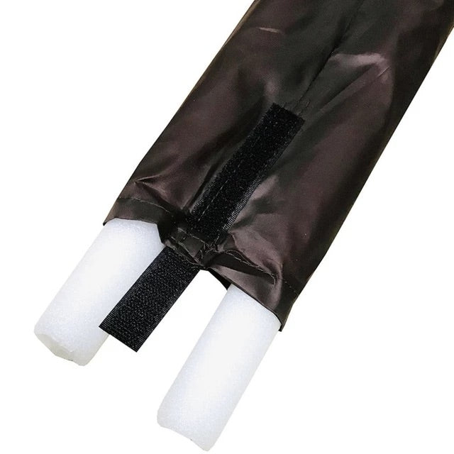 The fabric draft stopper sleeve holds foam cylinders on opposite sides of a door, creating an airtight, draft-proof seal.