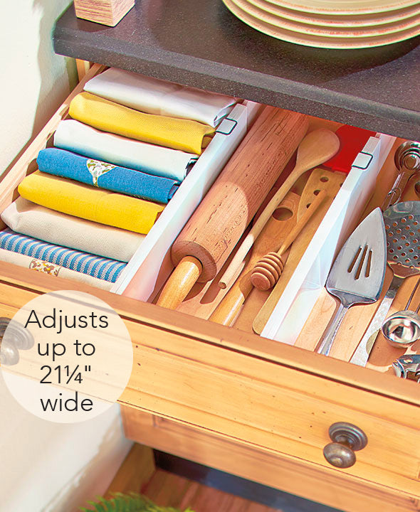 These super useful drawer dividers expand from 14" to 21.25" enabling you to use them in small draws and bigger drawers.