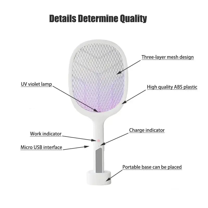 Dual Use USB Operated Rechargeable Electric Fly Zapper Swatter With Purple Lamp Seduction Trap – LED Mosquito Killing Lamp – White – (LTD-638)