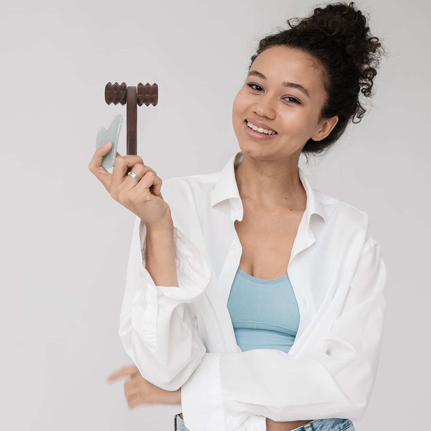 - 1 x Gua Sha Wooden T Anti Cellulite Massage Roller