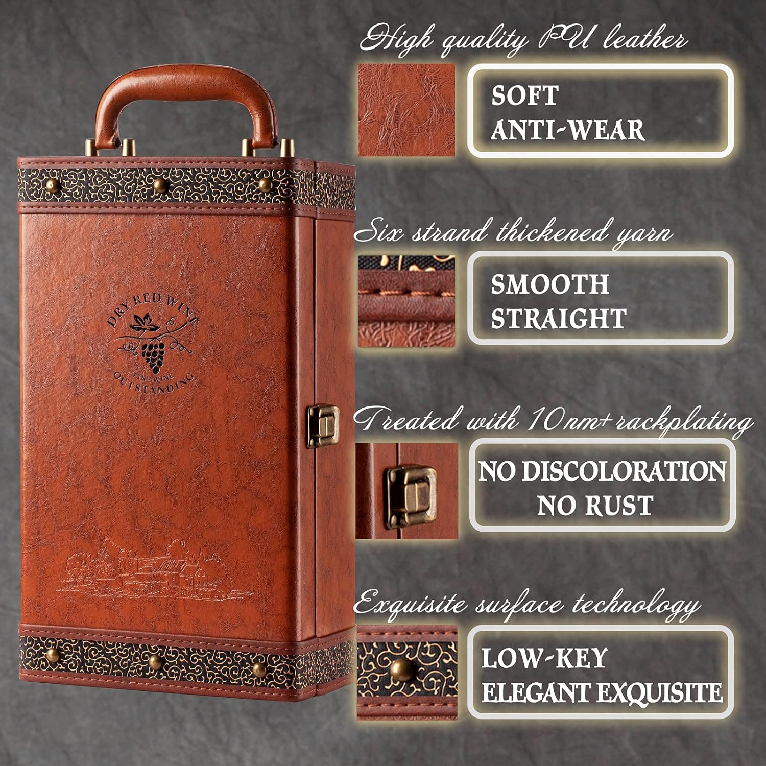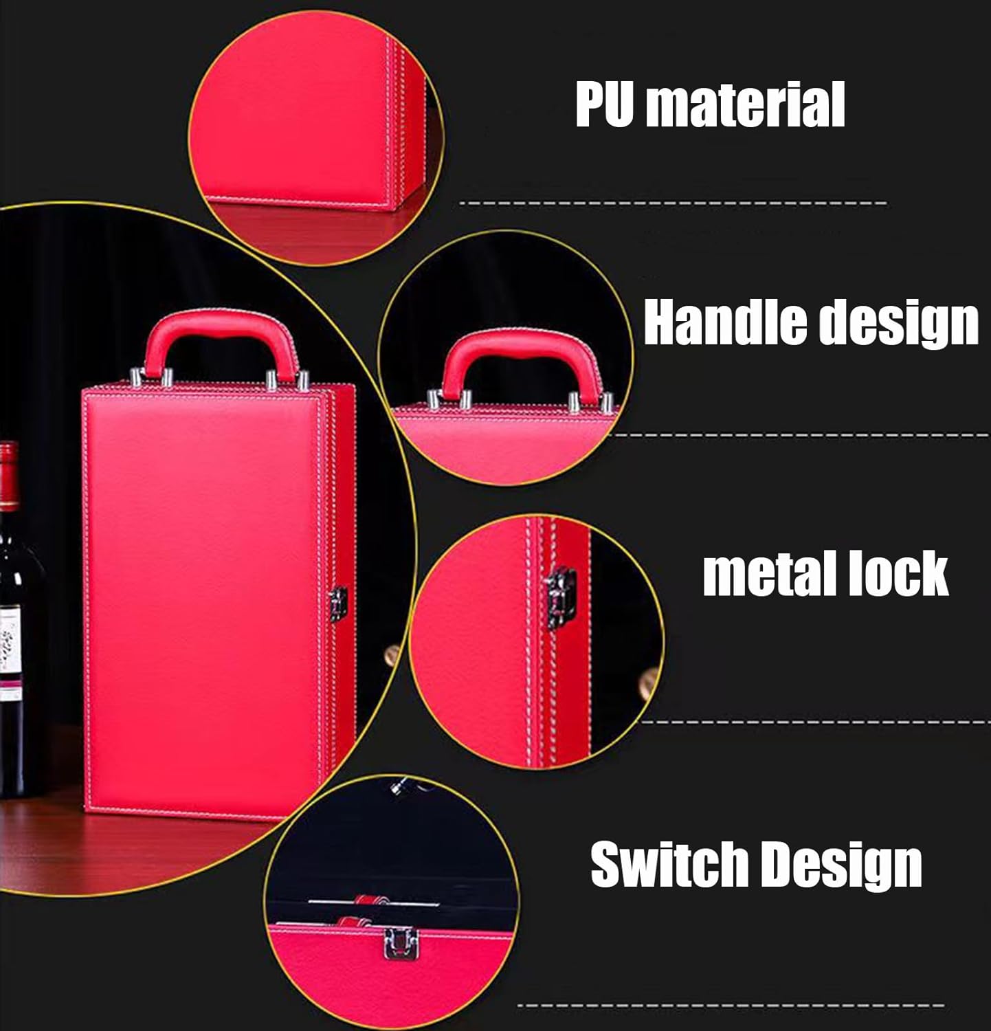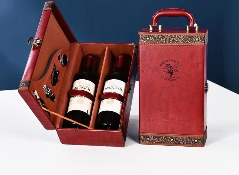 Elevate any occasion with our Luxury Leather Wine Box Gift Packaging. Crafted from high-quality materials, its durable and elegant design adds sophistication to any event. Its convenient size makes it perfect for picnics, parties, or as a special gift. Equipped with wine tools and ample storage space for two bottles, it's a versatile and impressive gift option.