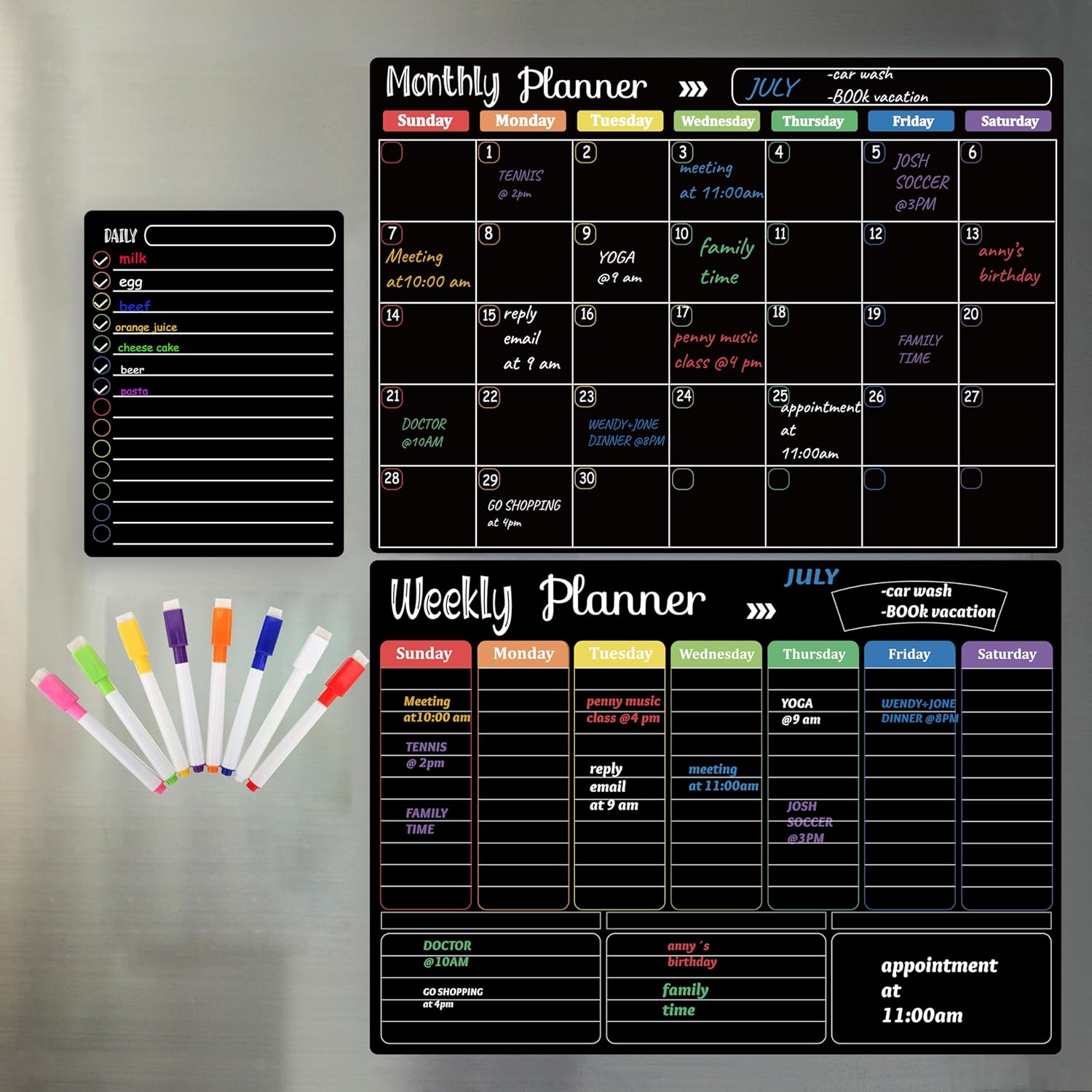 Magnetic Monthly, Weekly, and Daily Planner Board Set With Markers:
