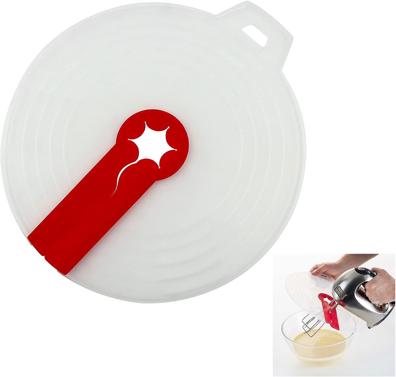 Experience ultimate protection and mess-free mixing with our Mixing Bowl Splash Guard! Made of durable PP plastic and food-safe silicone, it effectively prevents splash and splinters when using an electric mixer. With a flexible inner ring, it's suitable for both small and large mixing bowls. Plus, it's easy to clean and comes with a transparent design for easy viewing. Whip cream and mix batter with peace of mind!