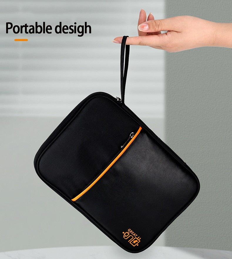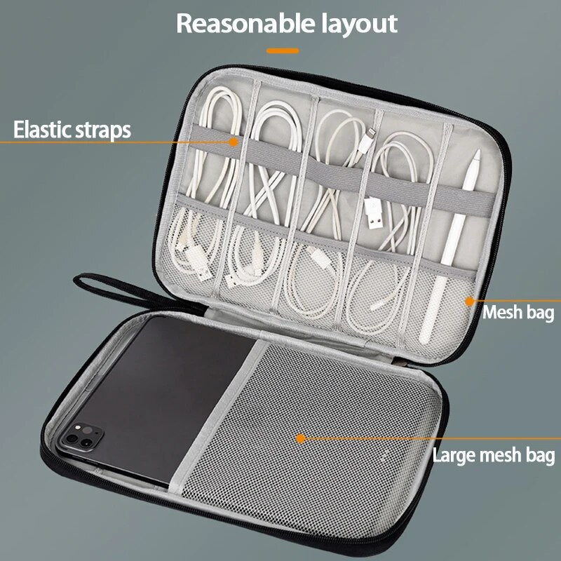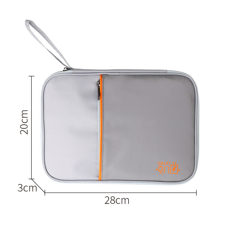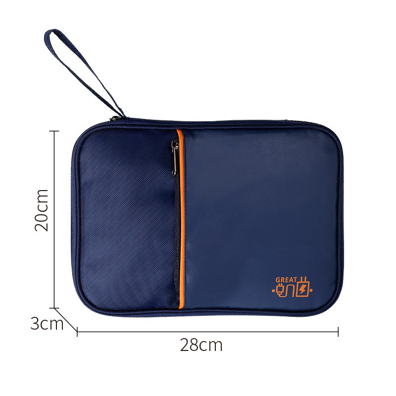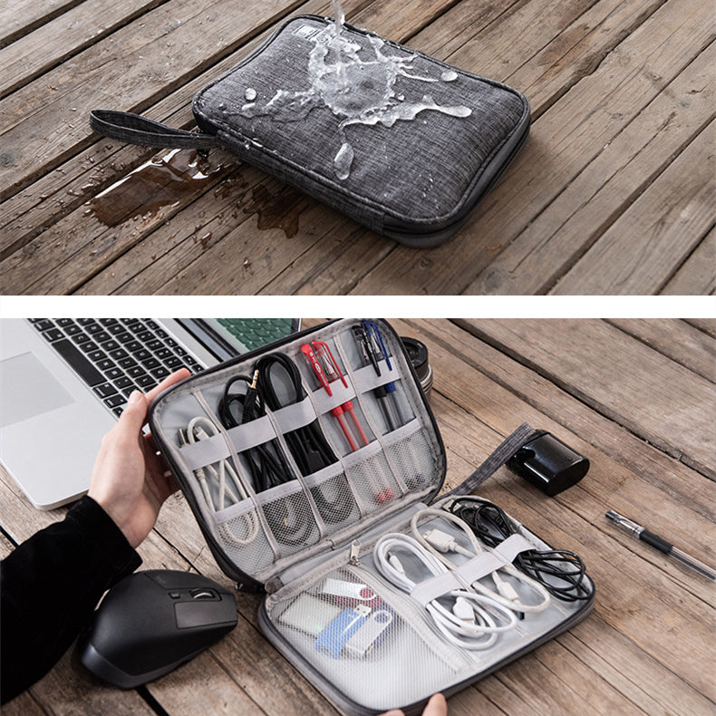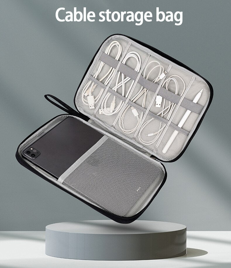 The bag has simple design and its multiple pockets can hold all kinds of cables, which makes it easy for you to organize your devices. The product is a great choice for your iphone, ipad, ipod, cellphone, camera, power bank, portable charger, kindle, MP3 player, laptop, hard drive, flash drive and other electronics accessories. The bag has simple design and its multiple pockets can hold all kinds of cables, which makes it easy for you to organize your devices. This is the end of the description.