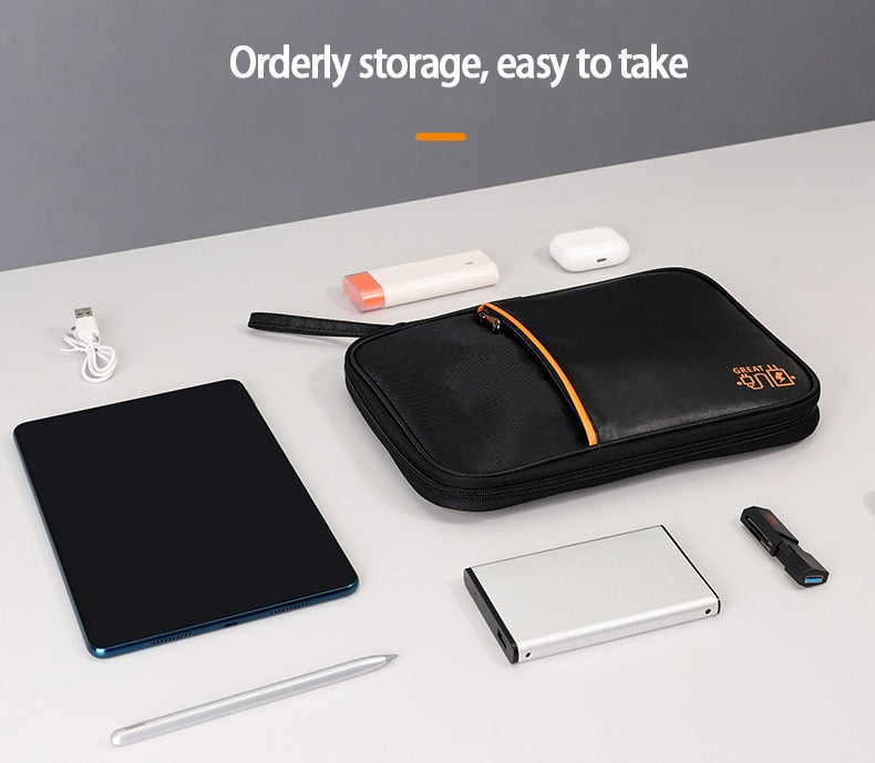 The bag is made of high quality material, durable and sturdy. The product is a great choice for your iphone, ipad, ipod, cellphone, camera, power bank, portable charger, kindle, MP3 player, laptop, hard drive, flash drive and other electronics accessories.