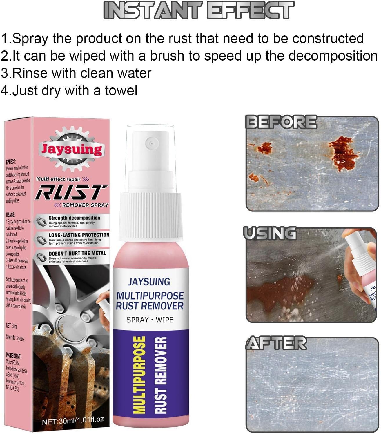 Metal Rust Remover provides an easy application - ergonomically designed and easy to use - so you just spray and wipe with a rag or towel. Effective decomposition helps restore metals to their original state, while long-lasting protection coats and safeguards items for months. Additionally, the non-corrosive, odorless feature makes Rust Remover Spray a great cleaning tool for the home. Equally suitable for door shafts, hinges, car wheels, and more, the anti-rust spray is a versatile house cleaning tool.
