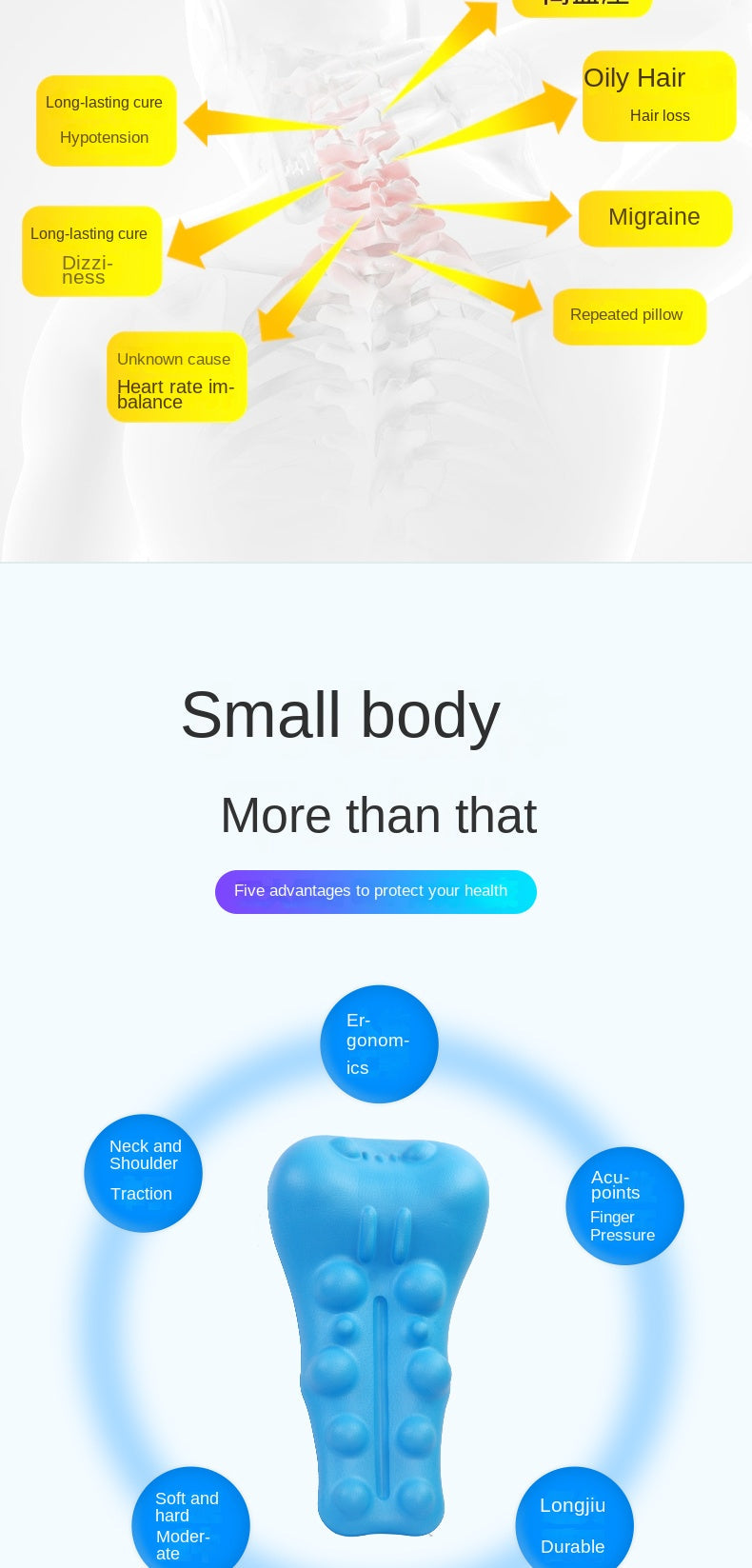 Want to use it? Here's how: Find a spot to sit or recline for 10 mins - bed, sofa, floor or chair. Locate the neck support in the middle of your neck, and adjust it up/down until you feel comfortable. Let your neck sink into the support, bend knees, put a hand to your head and take slow breaths. Notice your posture improving. Reposition the device every few minutes to avoid local fatigue. Start with small sessions of 5 minutes, increasing when you feel comfy. Slight discomfort is normal, but stop device and consult a healthcare professional if you feel pain. Device is waterproof, and if it smells, just use warm water and a disinfectant before airing for 24-48 hours.