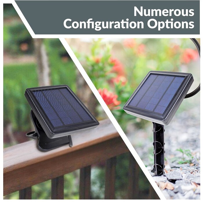 - Power: Solar or USB (USB cable not included)