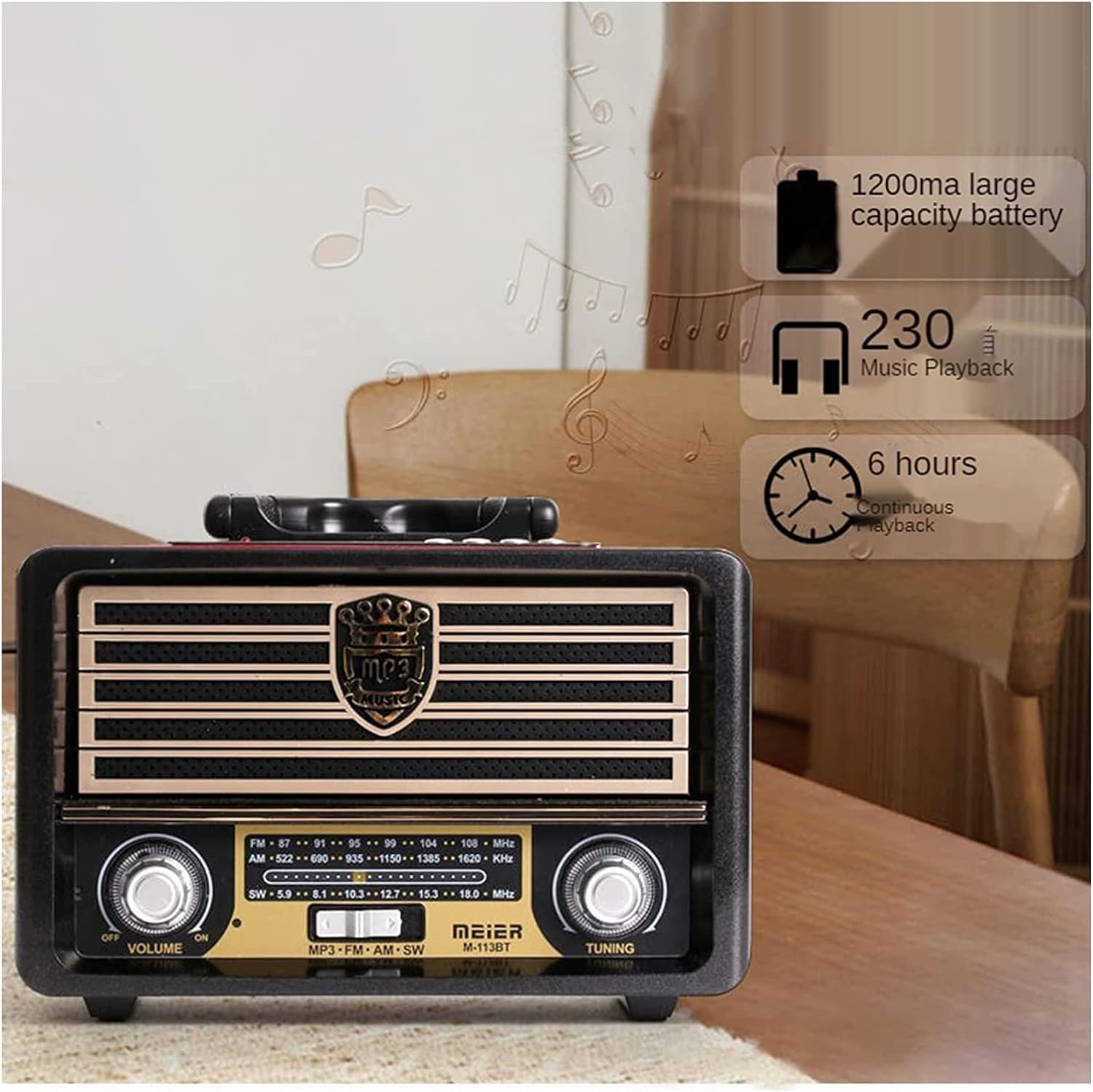 Relish your favorite music anytime, anywhere with this Portable Retro Bluetooth AM/FM Radio! Choose how you would like to indulge in your favorite tunes - via Bluetooth, Aux or Micro SD card - and let the six equalizer modes tailor the sound to your liking. Stream audio from your phone, tablet, or PC with ease and enjoy seamless, wireless music. This 3-in-1 radio speaker also features an FM radio mode, so you and your family can enjoy stories and songs. With its built-in lithium battery, it'll provide up to 6 hours of listening pleasure. Retain a feeling of nostalgia with its classic retro design and get ready to enjoy your favorite music!