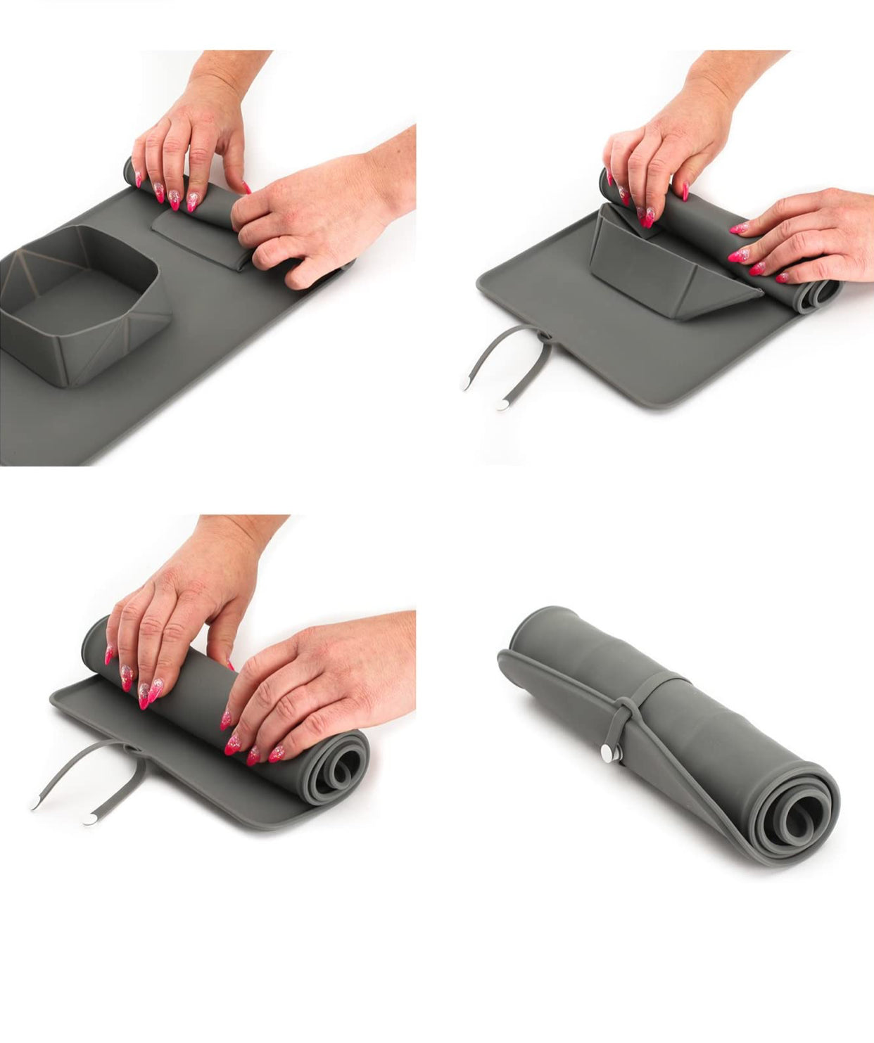 - Feed your loved dog or cat everyday with the RollaBowl food mat. This stylish, non slip feeding station helps protects against mess. A complete double food and water bowl with mat in one piece. Easy to store at home ? hang up after use or roll up! Easy!!
